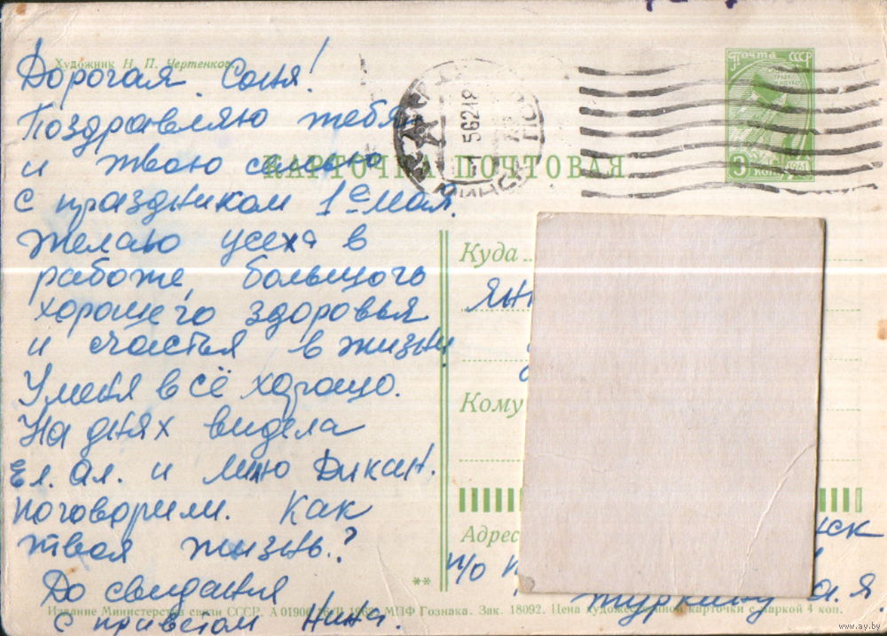 Подписанная открытка 1962г. "1 Мая. Пчелы и яблоневая ветка" худ. Н. Чертенков