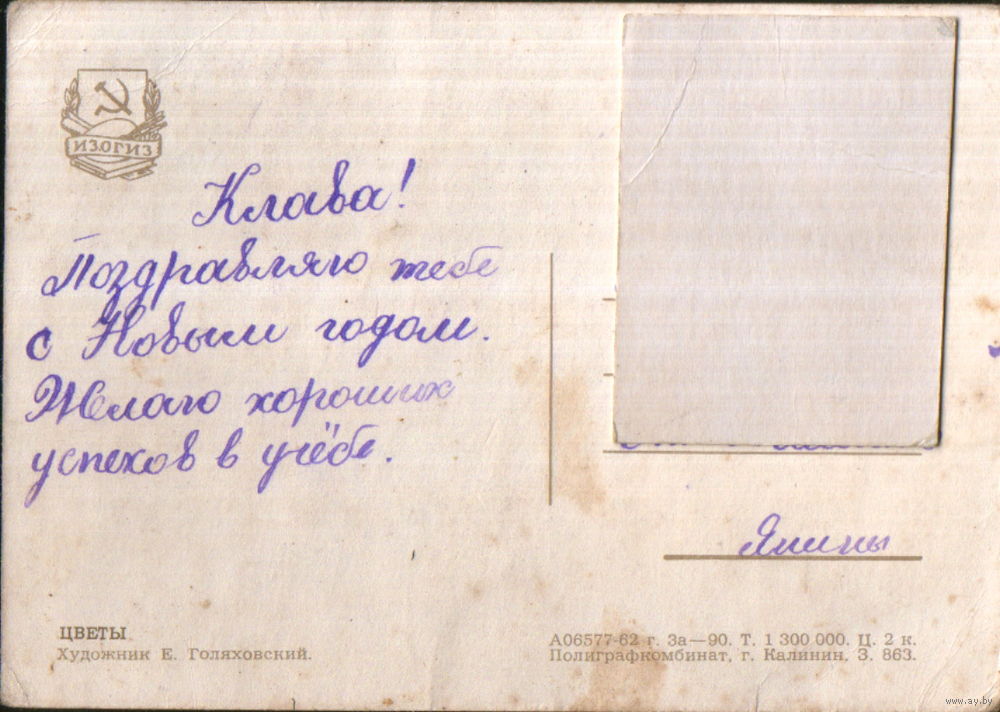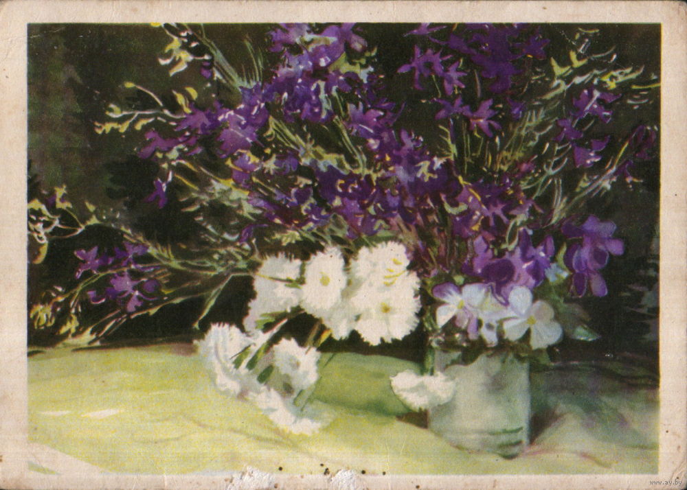 Подписанная открытка 1962г. "Цветы" худ. Е. Голяховский
