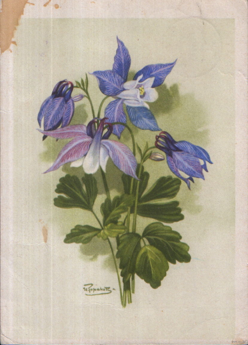 Подписанная открытка 1962г. "Орлик олимпийский или водосбор" худ. И. Романов