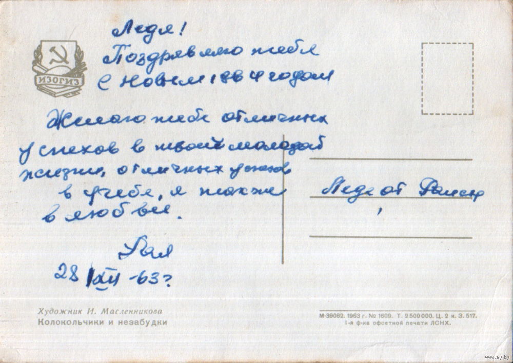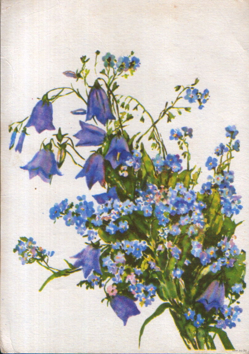 Подписанная открытка 1963г. "Колокольчики и незабудки" худ. И. Масленникова