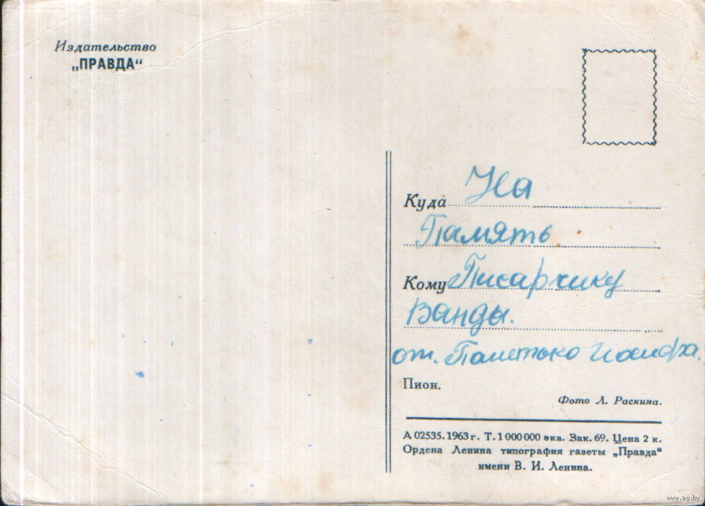 Подписанная открытка 1963г. "Пион" фото Л. Раскин