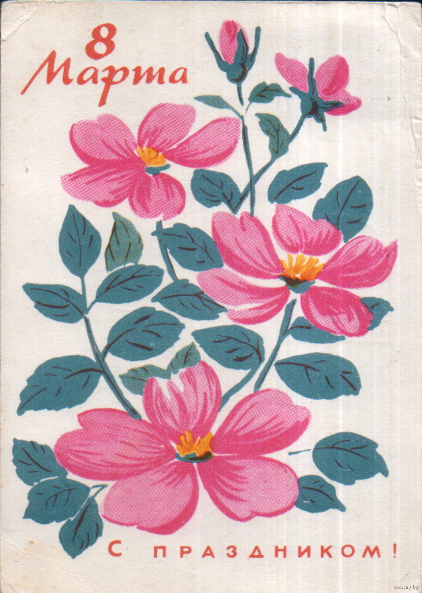 Подписанная открытка 1964г. "8 Марта. Цветы" худ. В. Фейгина