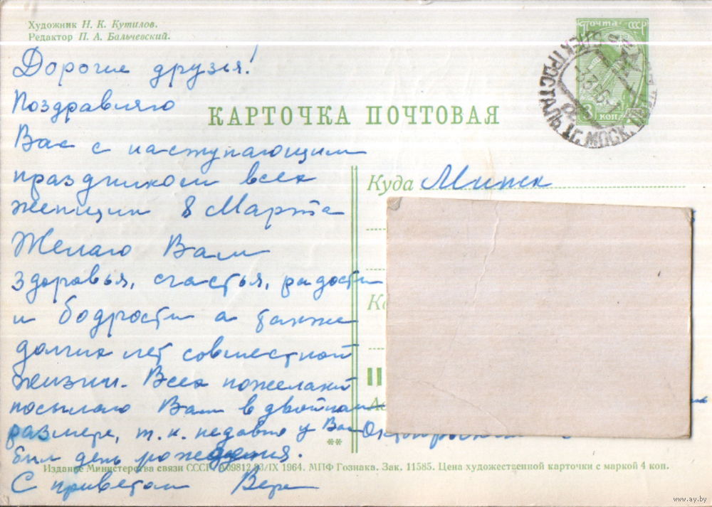 Подписанная открытка 1964г. "8 Марта. Мама с сыном" худ. Н. Кутилов