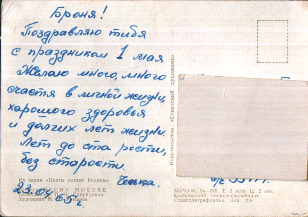 Подписанная открытка 1964г. "Бегония "Песнь Москве" худ. И. Романов