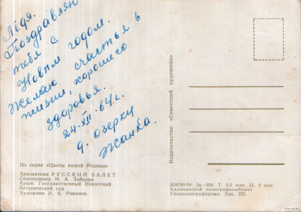 Подписанная открытка 1964г. "Хризантема "Русский балет" худ. И. Романов