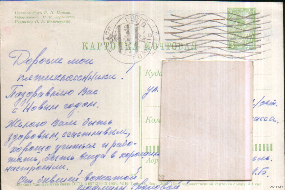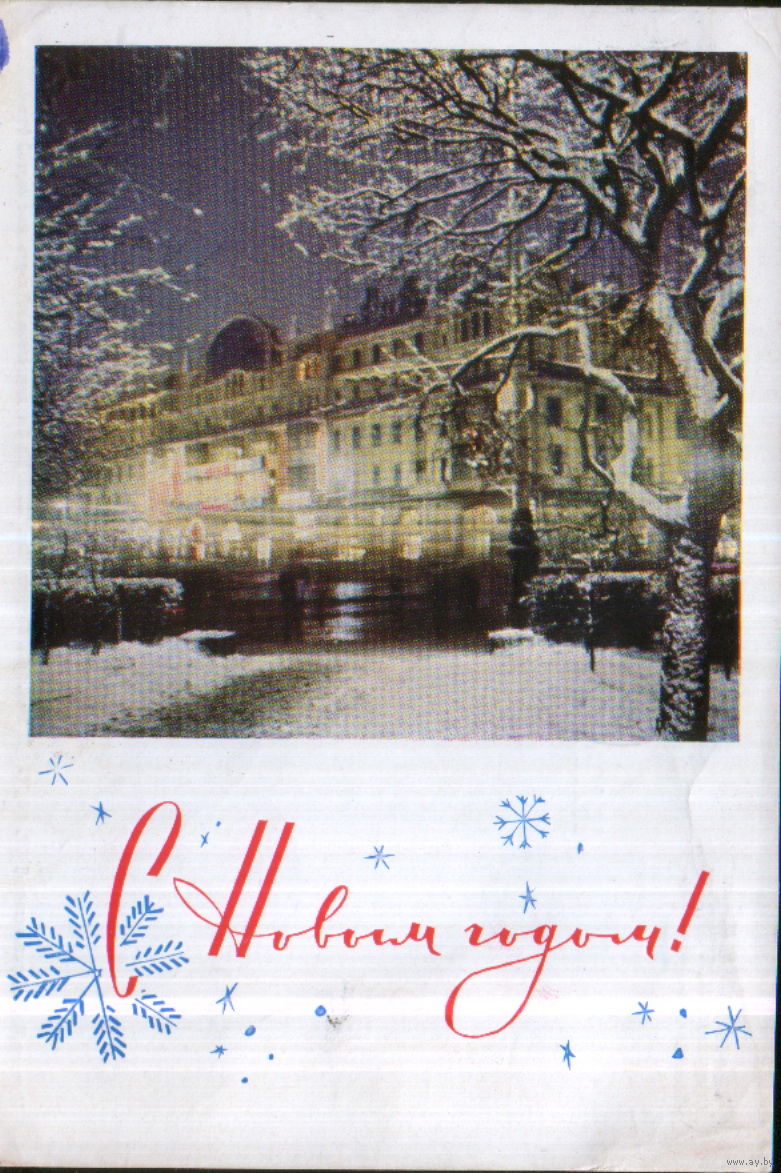 Подписанная открытка 1964г. "С Новым годом! Вечерний город" фото В. Панов, худ. И. Дергилев