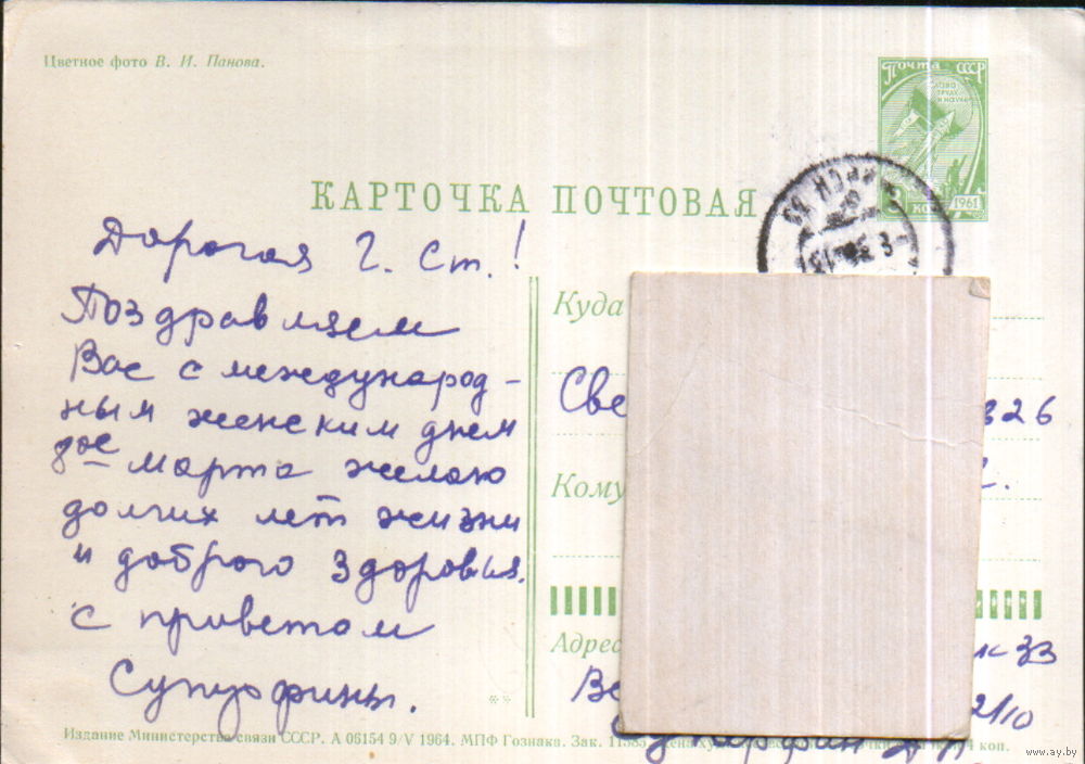 Подписанная открытка 1964г. "Тюльпаны" фото В. Панов
