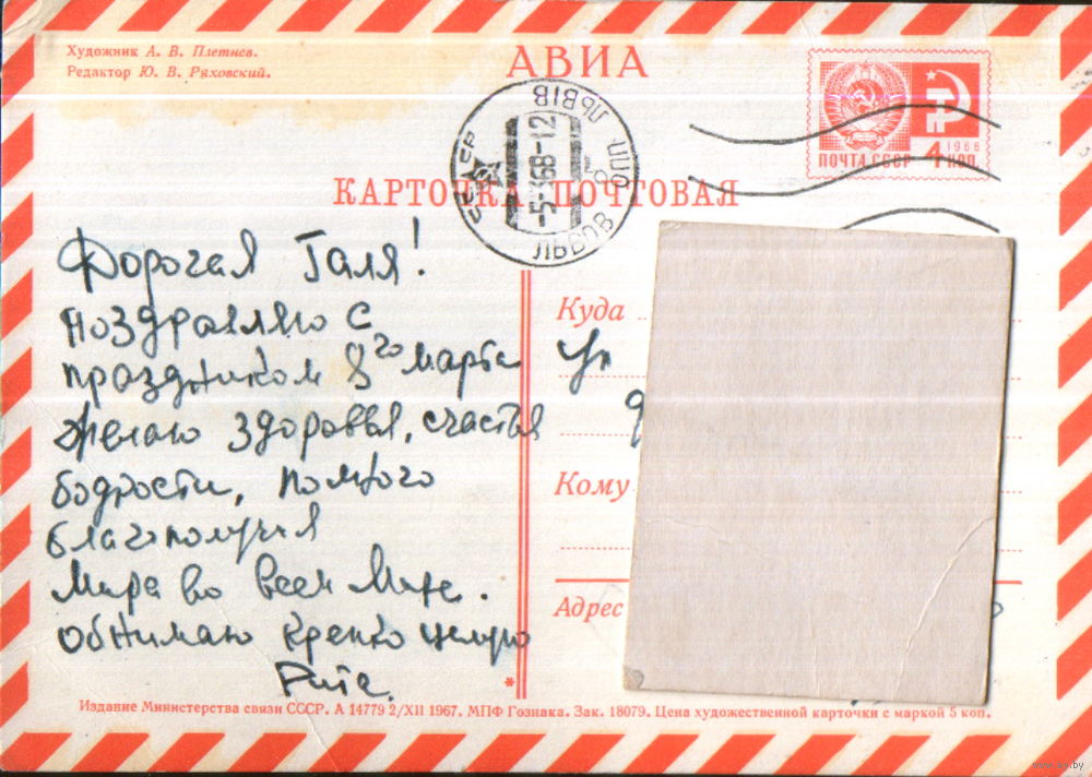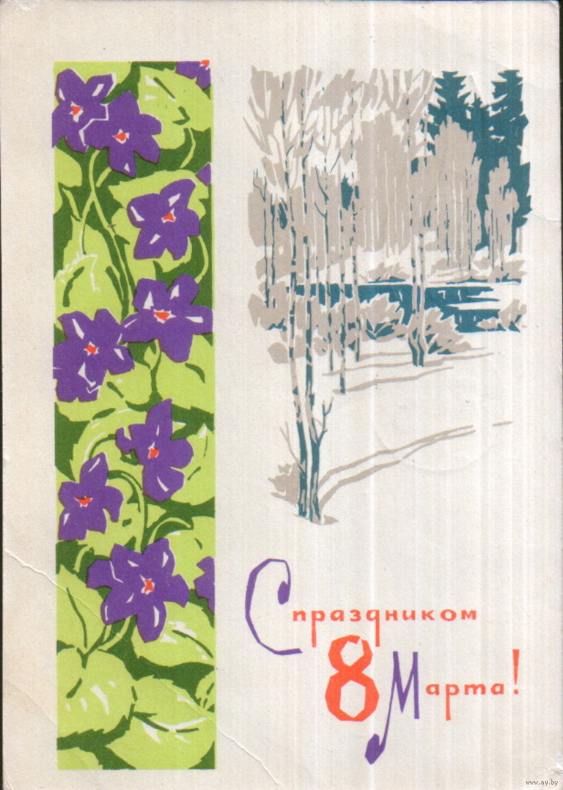 Подписанная открытка 1967г. "8 Марта. Весенний пейзаж" худ. А. Плетнев