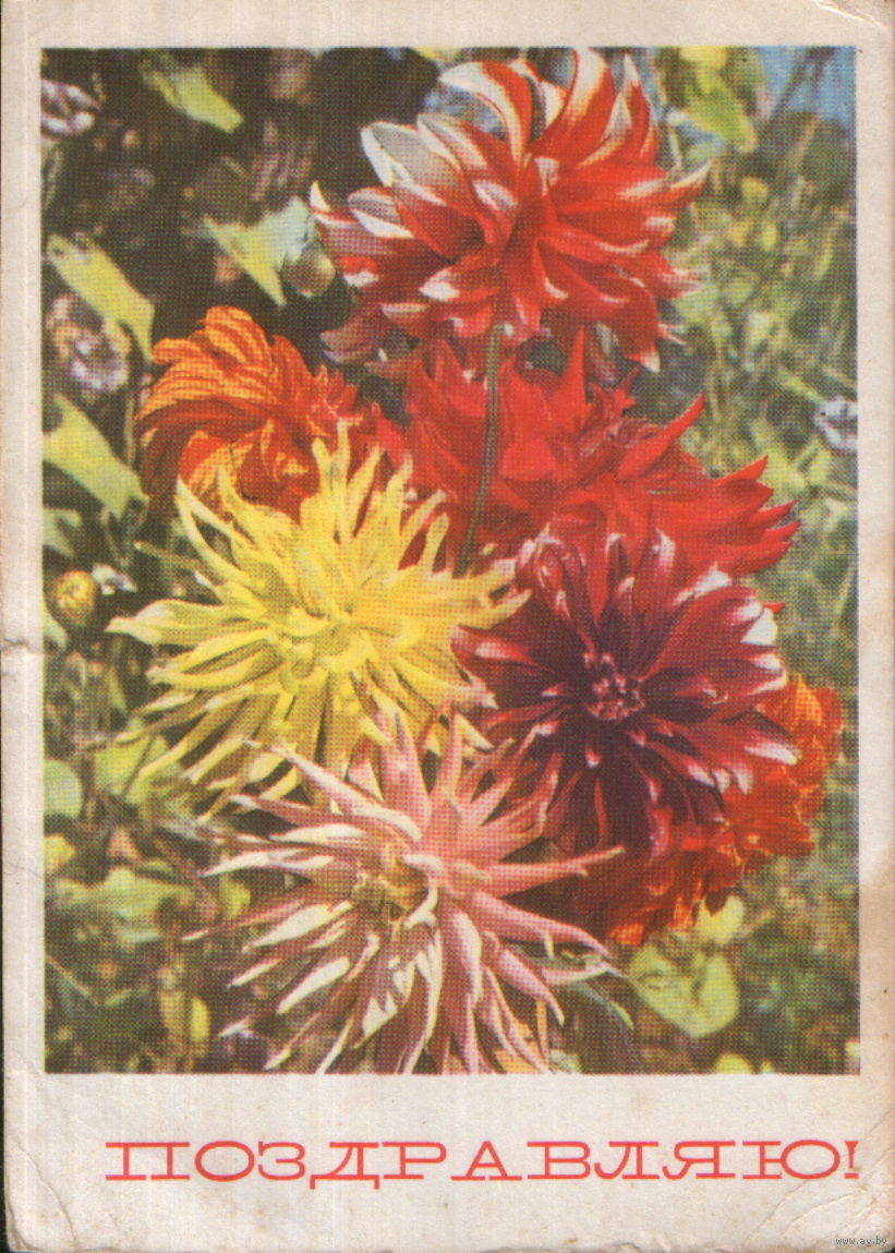 Подписанная открытка 1967г. "Георгины" фото В. Поляков