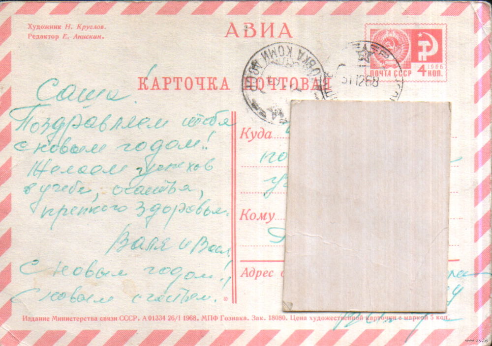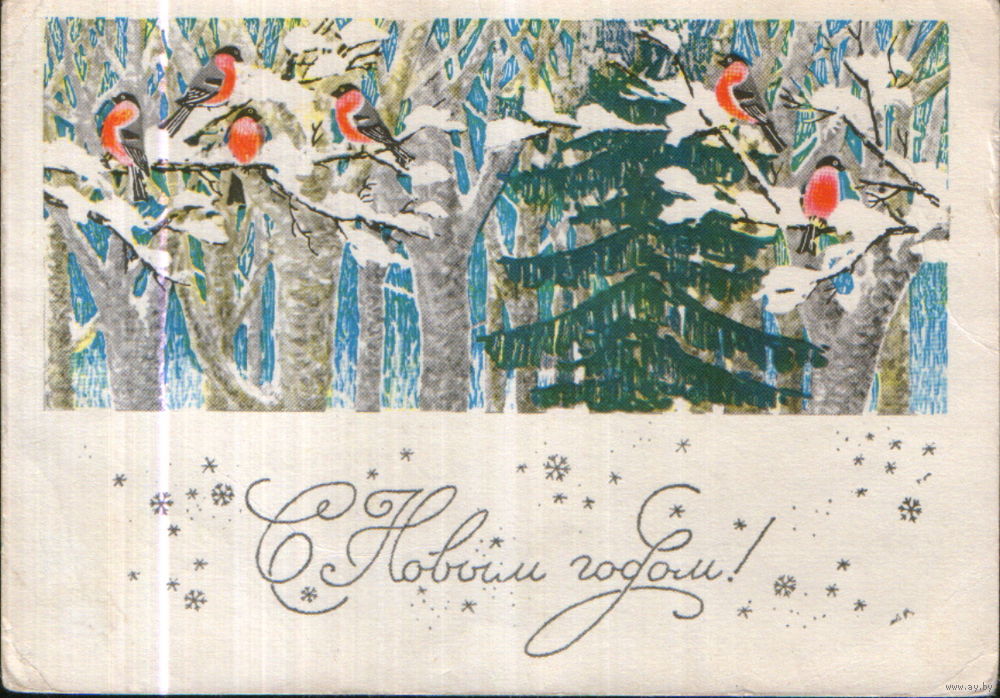 Подписанная открытка 1968г. "С Новым годом! Снегири" худ. Н. Круглов