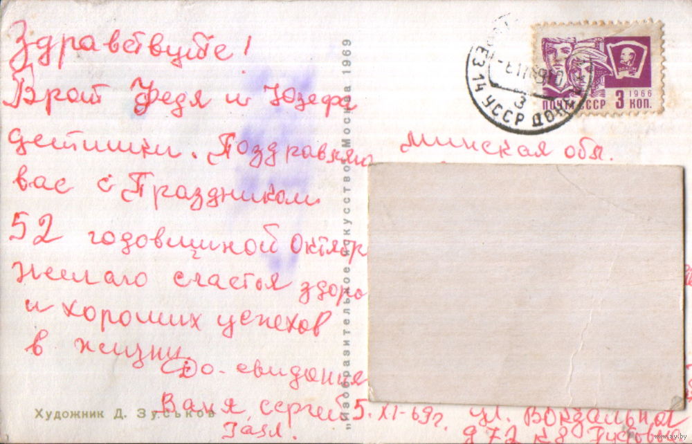 Подписанная открытка 1969г. "23 Февраля. Слава защитникам завоеваний Октября!" худ. Д. Зуськов