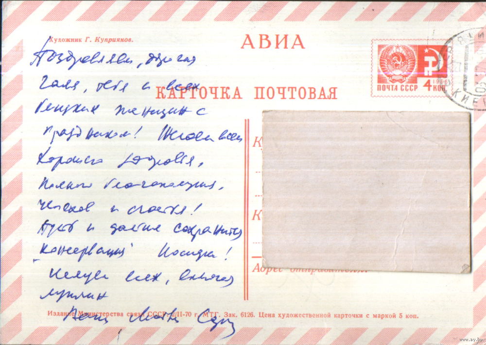 Подписанная открытка 1970г. "8 Марта. Солдаты" худ. Г. Куприянов