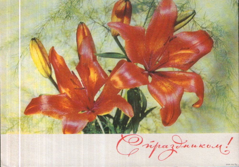 Подписанная открытка 1970г. "Лилии" фото И. Дергилев