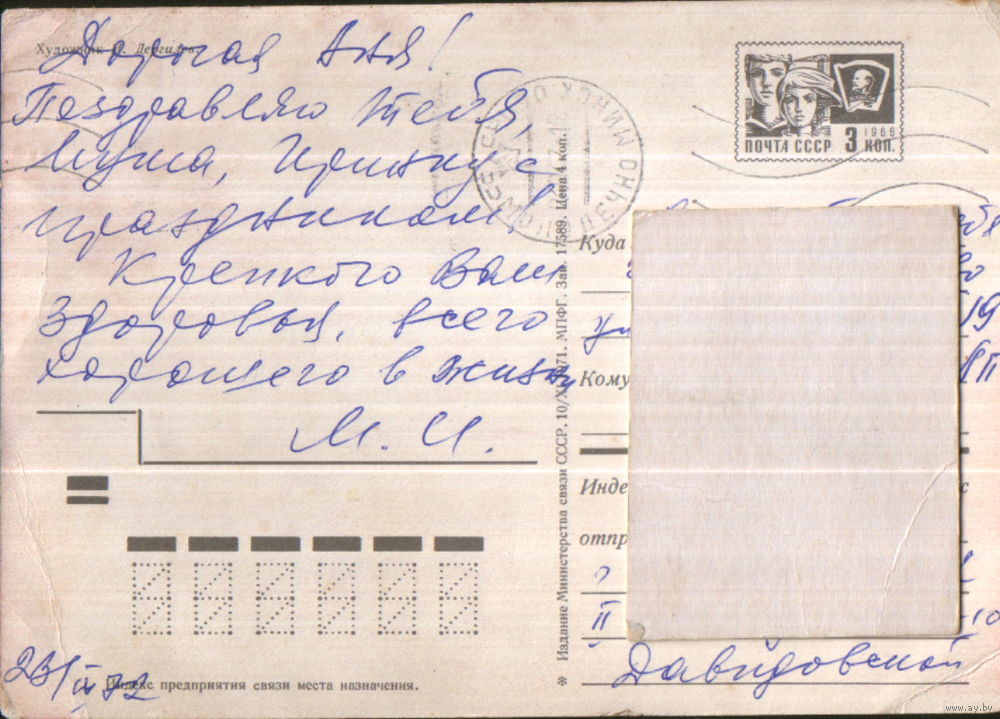Подписанная открытка 1971г. "1 Мая. Яблоневый цвет и флаги республик" худ. И. Дергилев