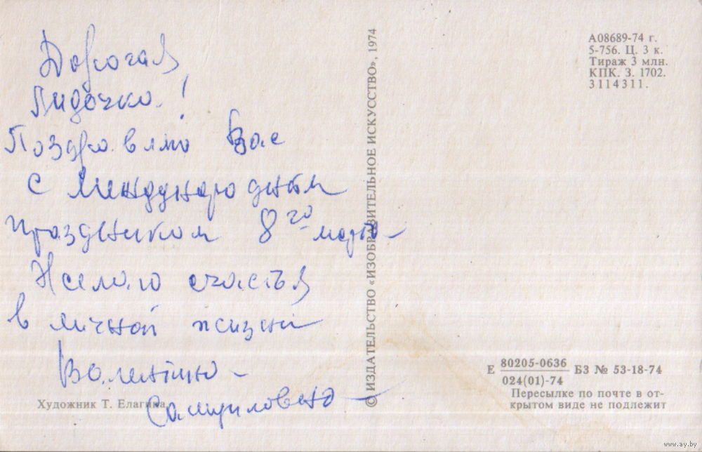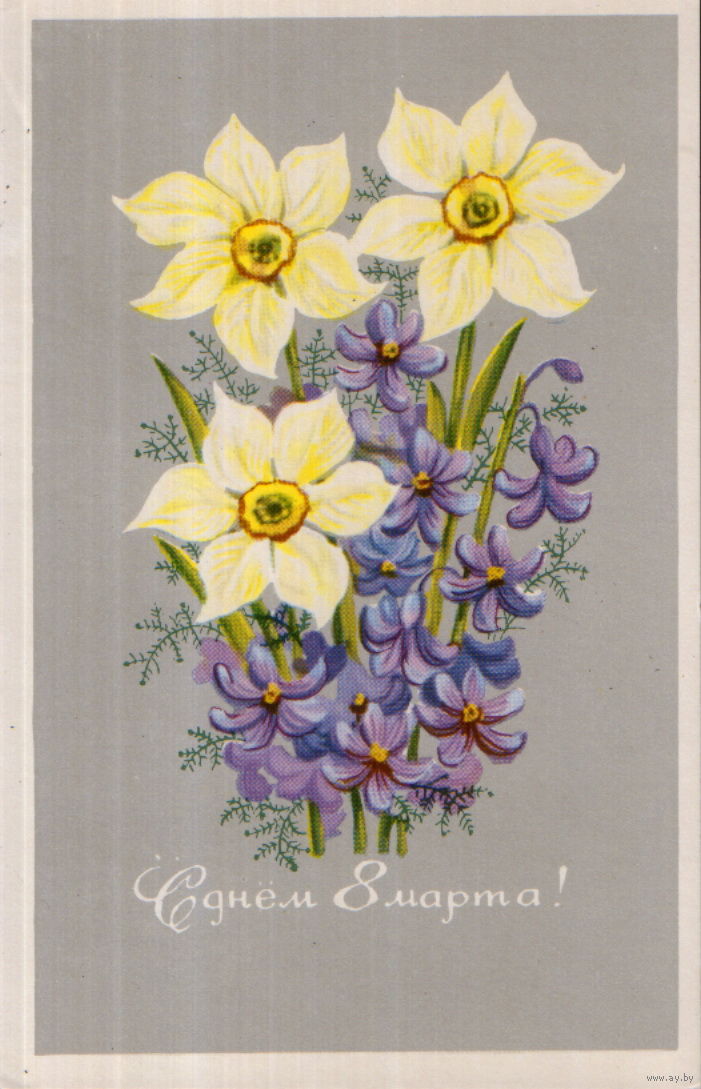 Подписанная открытка 1974г. "8 Марта. Нарциссы" худ. Т. Елагина