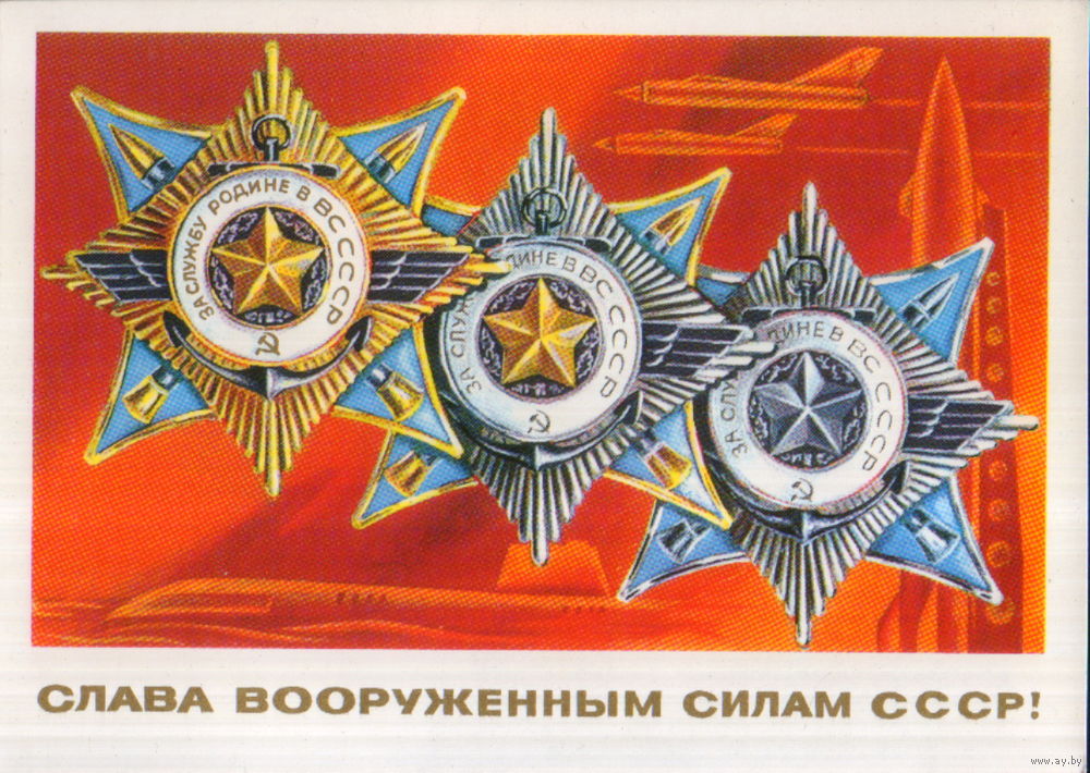 Подписанная открытка 1975г. "23 Февраля. Слава Вооруженным Силам СССР!" худ. А. Адашев