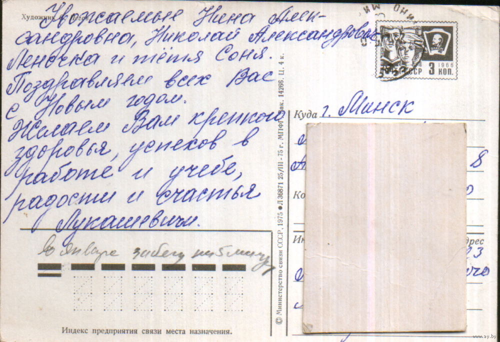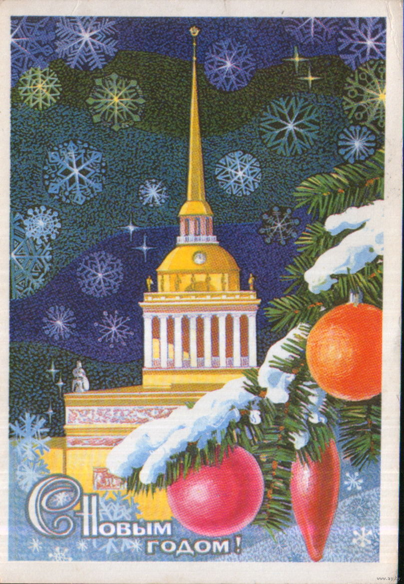 Подписанная открытка 1975г. "С Новым годом! Ленинград. Здание Главного адмиралтейства" худ. С. Пегов
