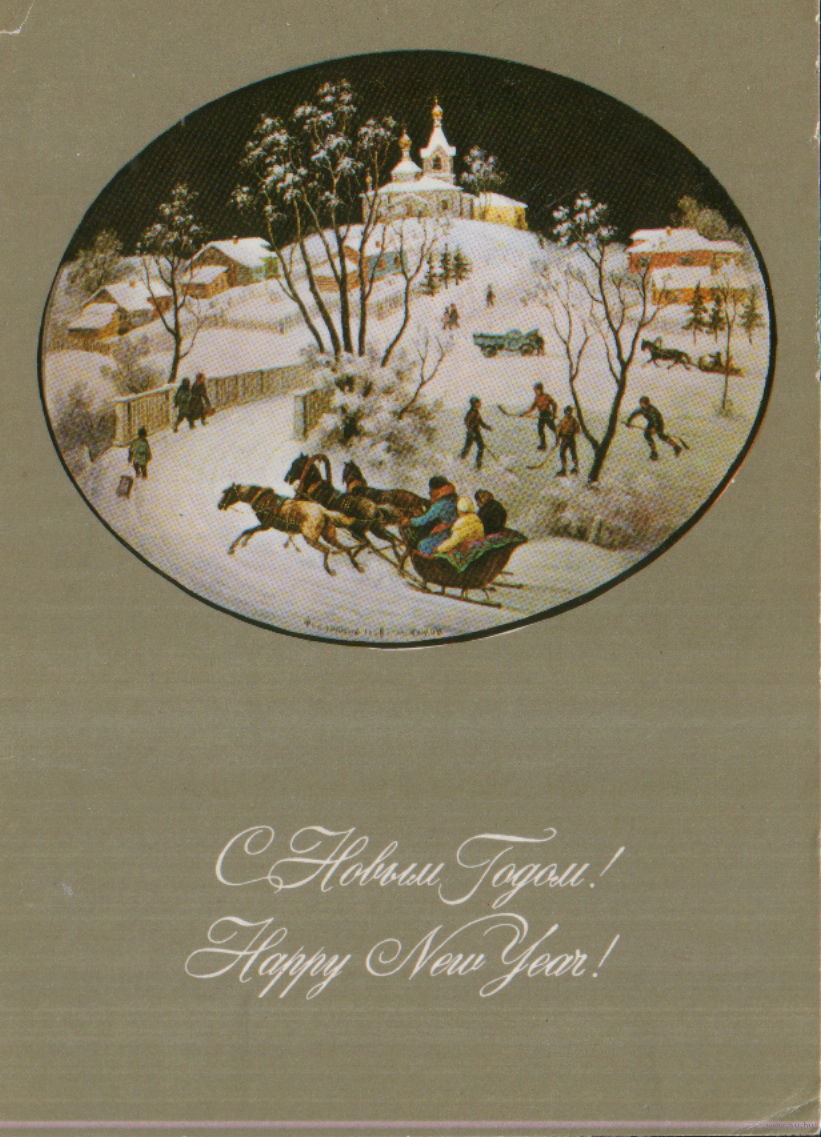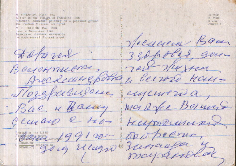 Подписанная открытка 1976г. "С Новым годом! М. Чижов "Зима в Федоскине" Федоскино