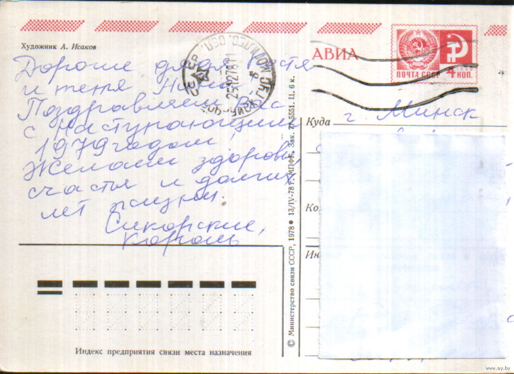 Подписанная открытка 1978г. "С Новым годом! Лиса с гитарой" худ. А. Исаков