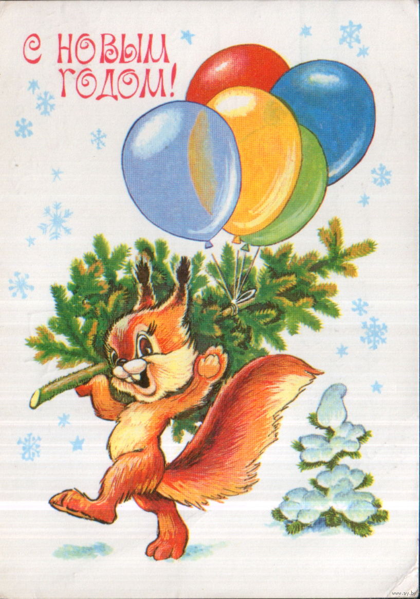Подписанная открытка 1980г. "С Новым годом! Белка с елкой" худ. В. Четвериков