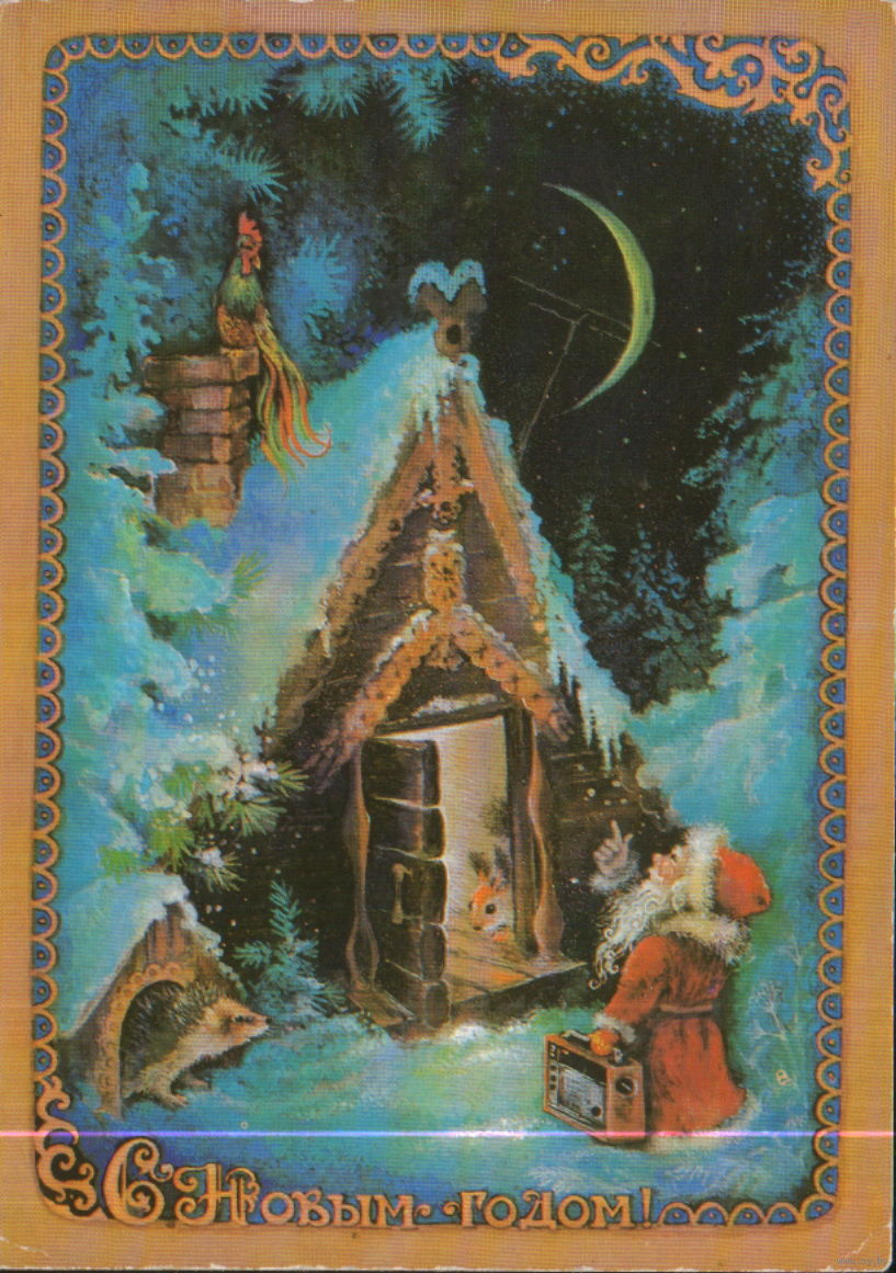 Подписанная открытка 1980г. "С Новым годом! Дед Мороз у теремка" худ. А. Исаков