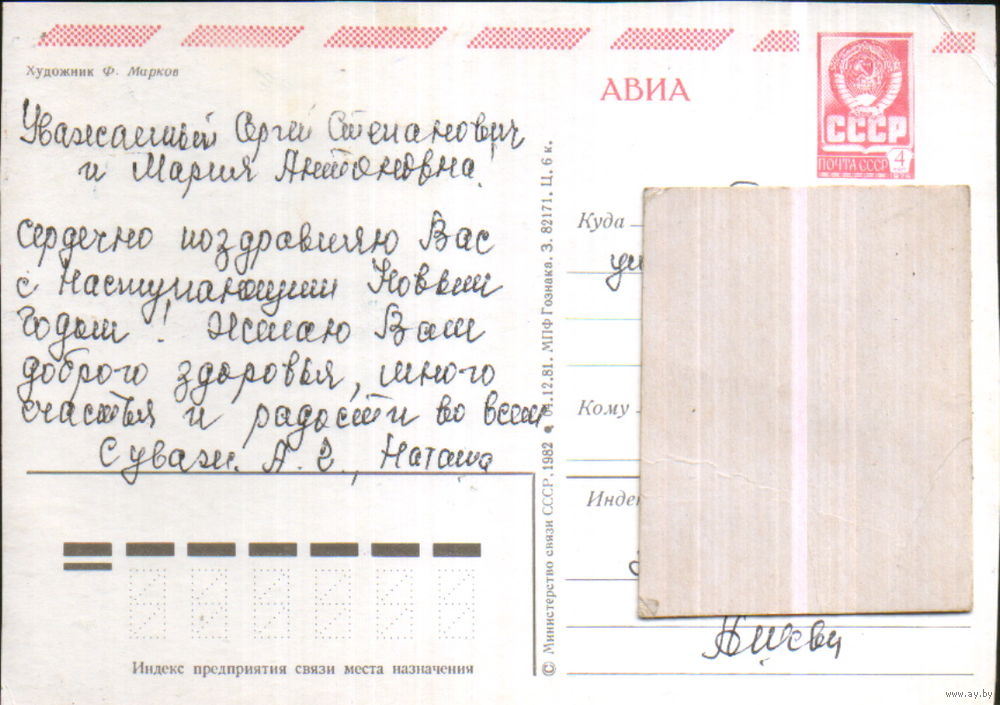 Подписанная открытка 1981г. "С Новым годом! Ветка ели" худ. Ф. Марков