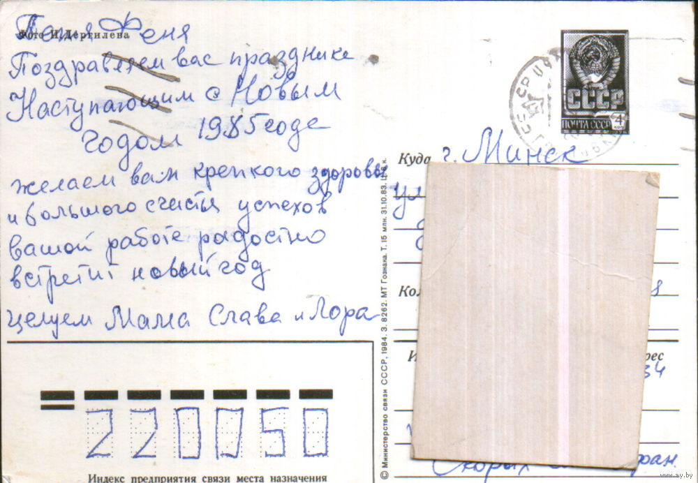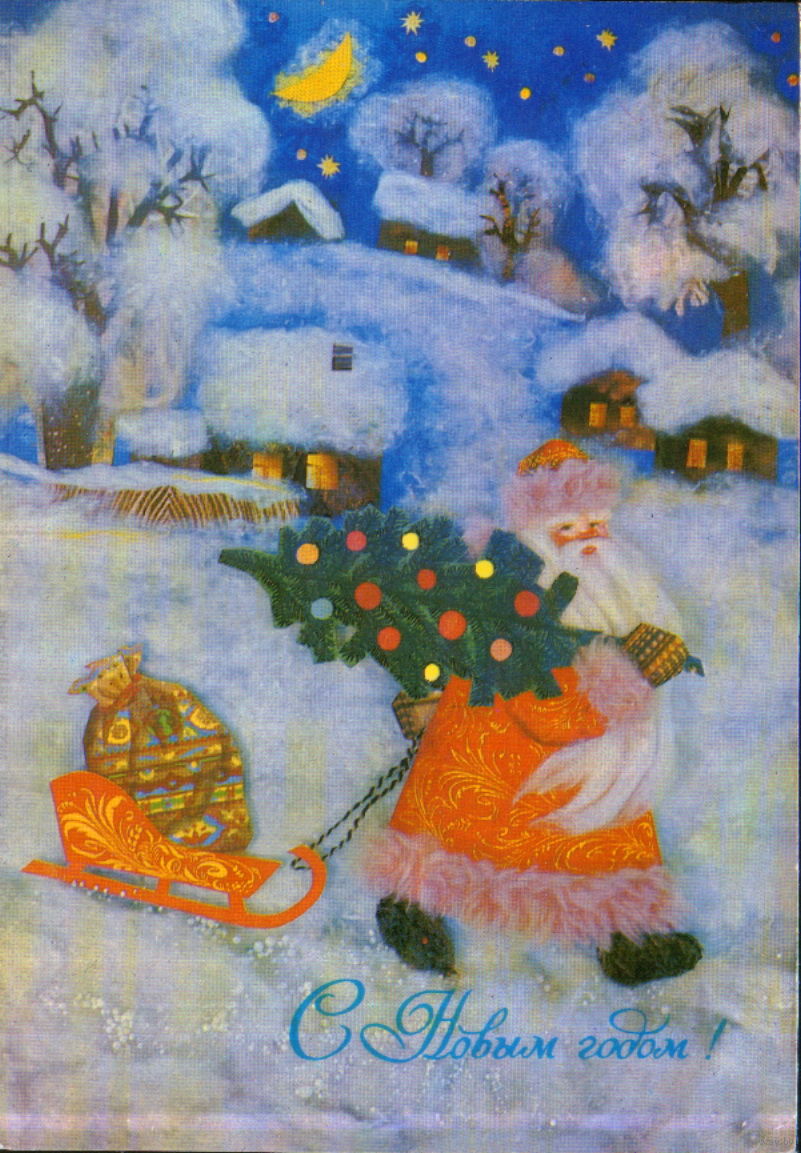 Подписанная открытка 1983г. "С Новым годом! Дед Мороз с елкой" фото И. Дергилев
