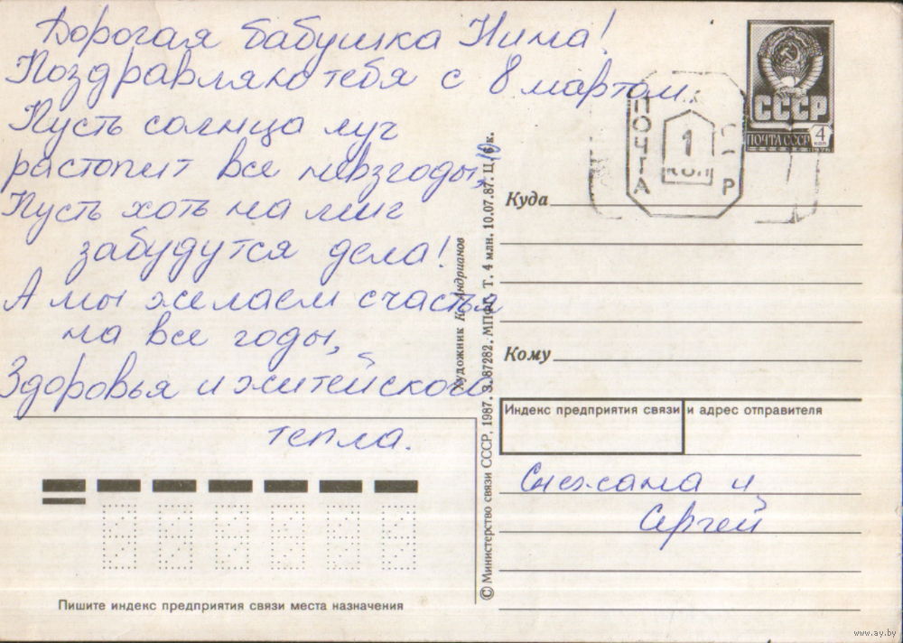 Подписанная открытка 1987г. "8 Марта. Хоровод" худ. К. Андрианов