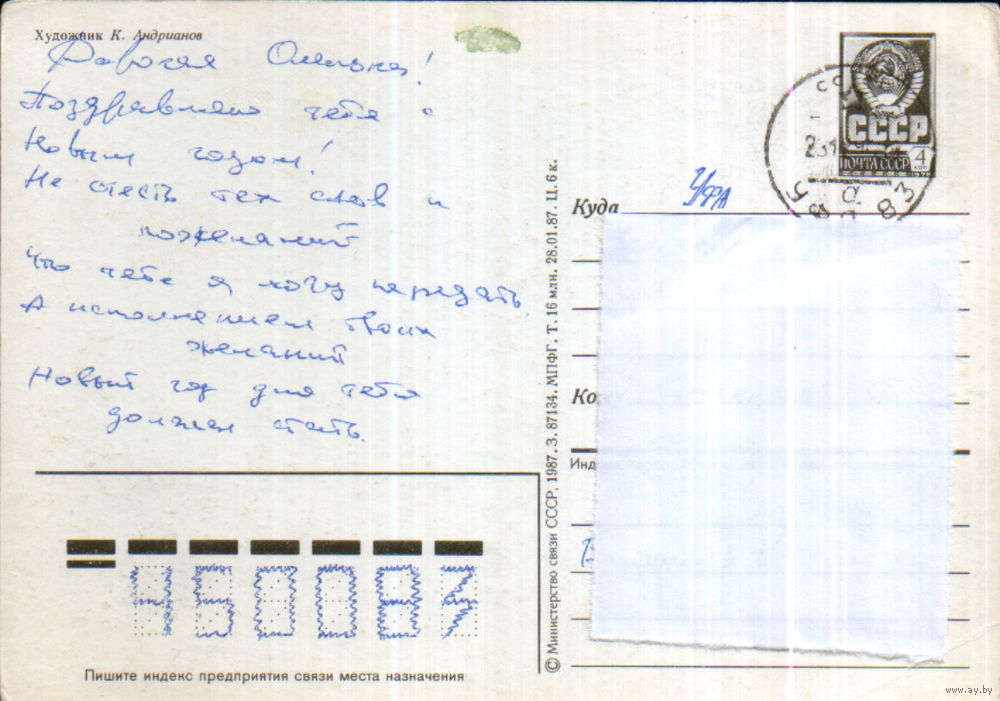Подписанная открытка 1987г. "С Новым годом! Дед Мороз в Подмосковье" худ. К. Андрианов