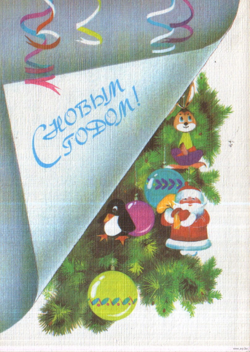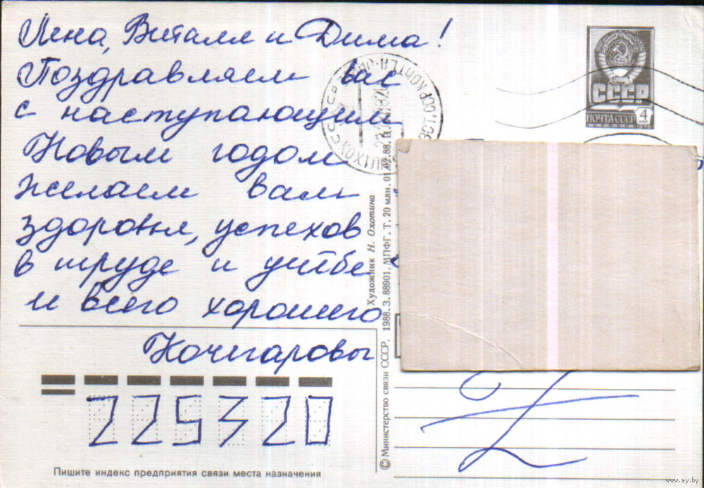 Подписанная открытка 1988г. "С Новым годом! Елочные игрушки" Н. Охотина
