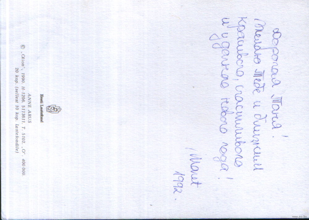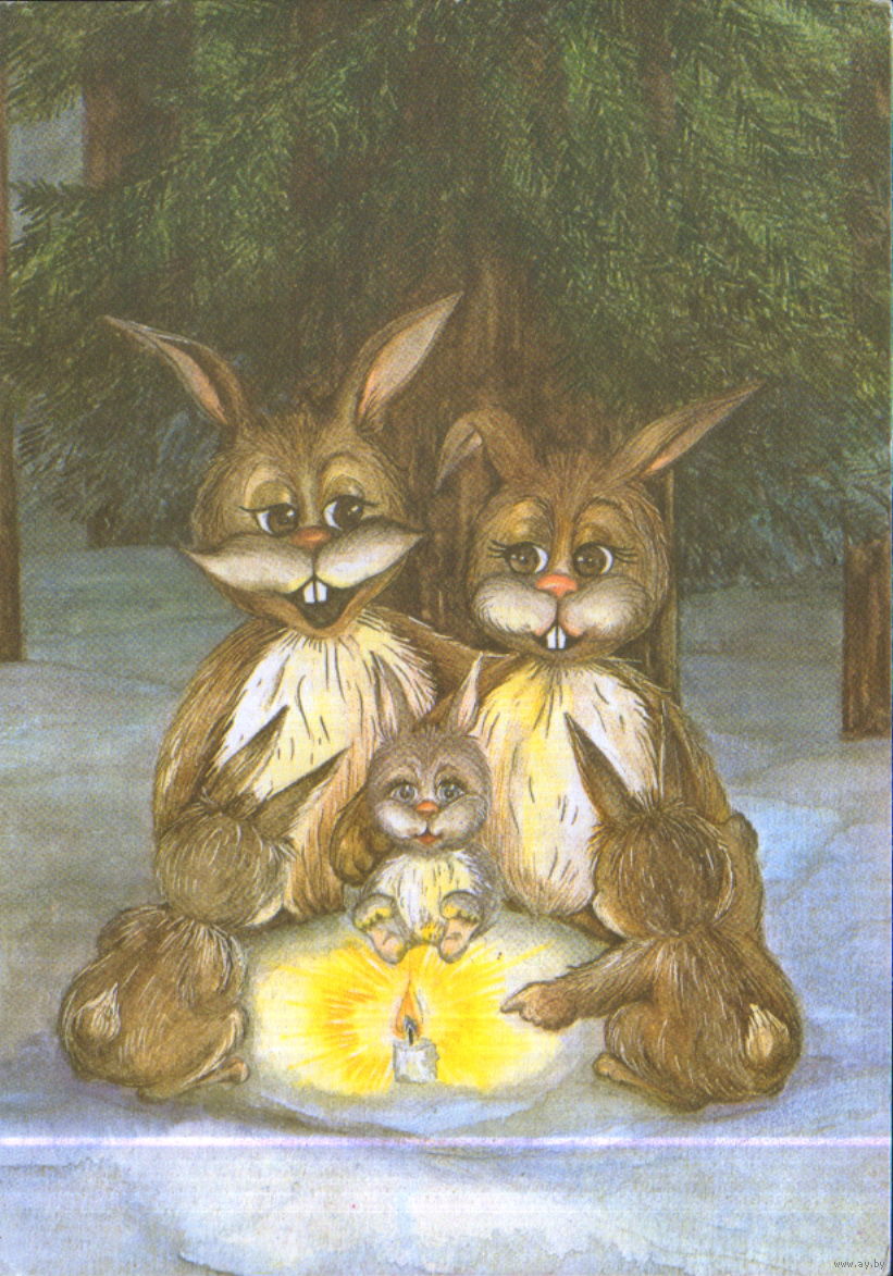 Подписанная открытка 1990г. ЭССР "С Новым годом! Зайцы" худ. Анне Арус
