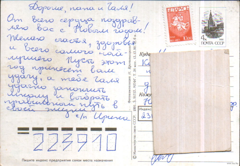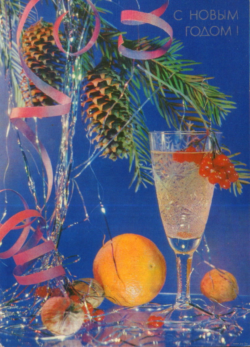 Подписанная открытка 1990г. "С Новым годом! Бокал" фото И. Кропивницкий