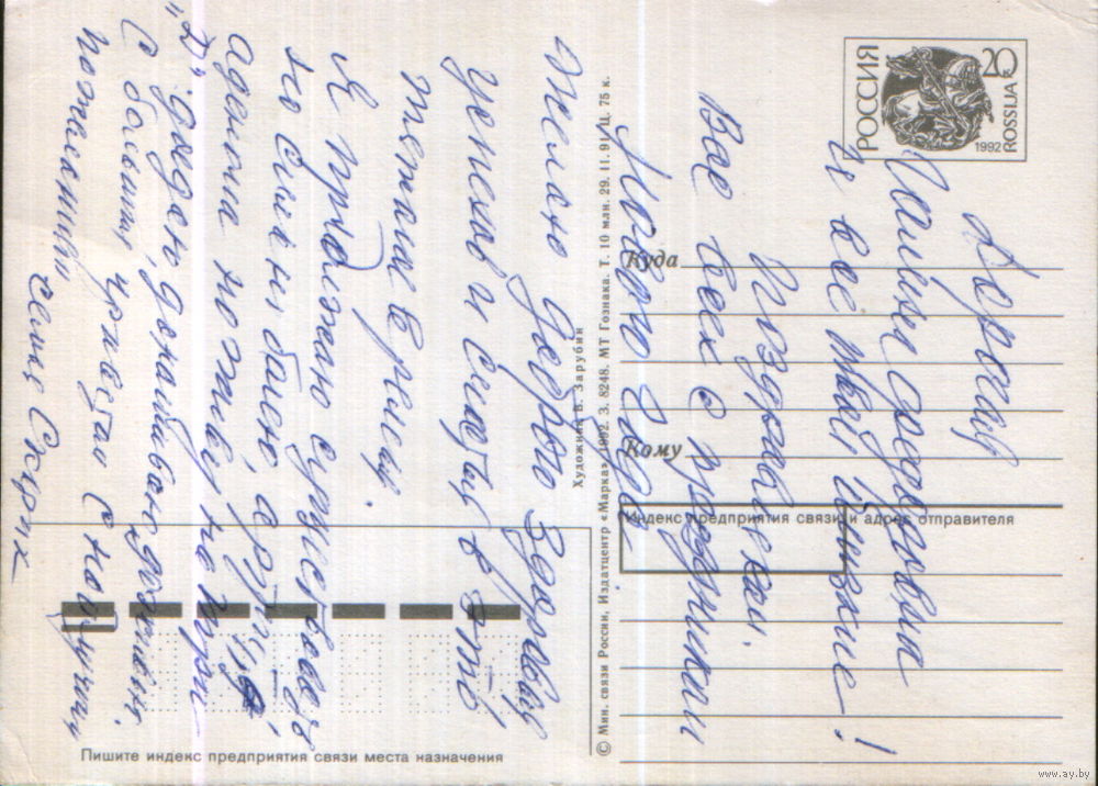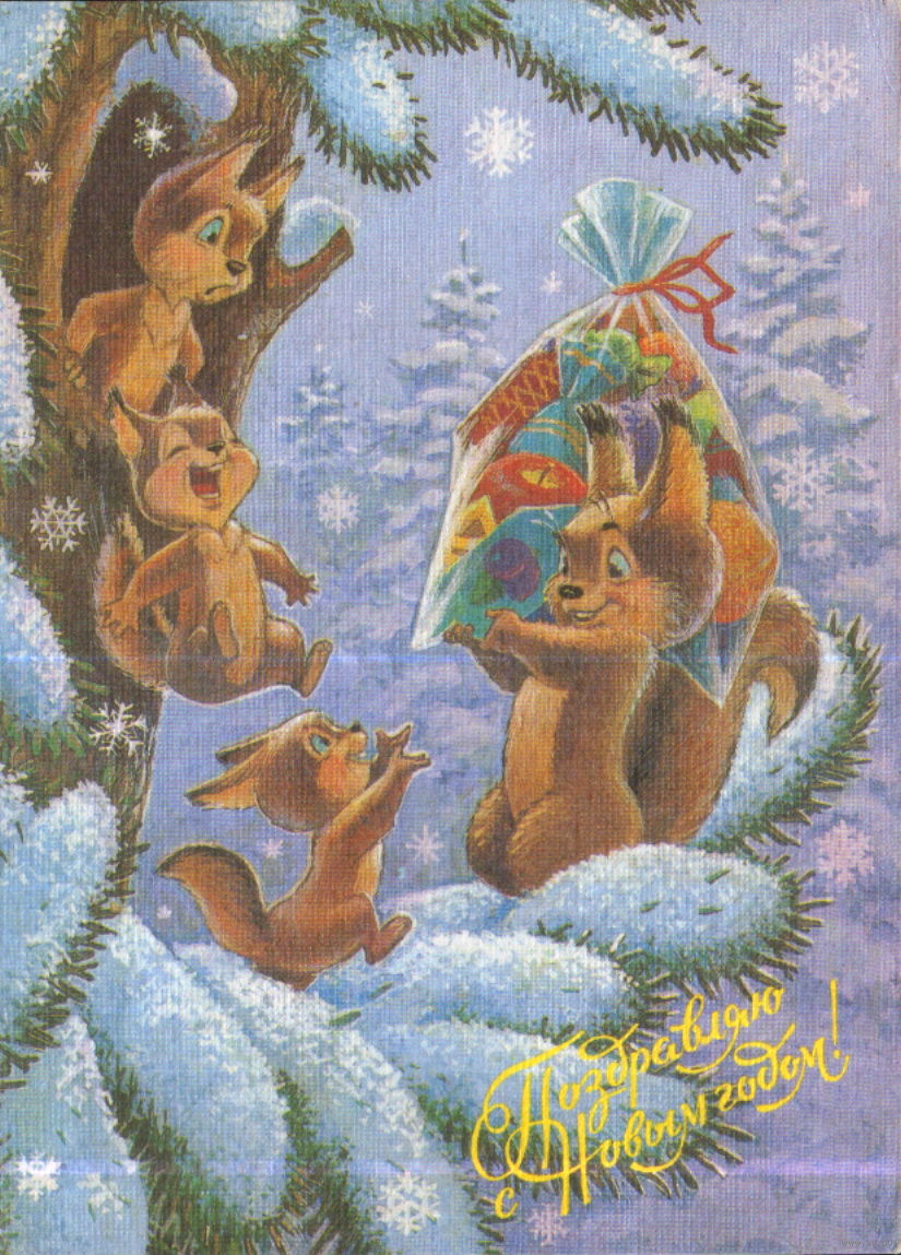 Подписанная открытка 1991г. "С Новым годом! Семья белок" худ. В. Зарубин