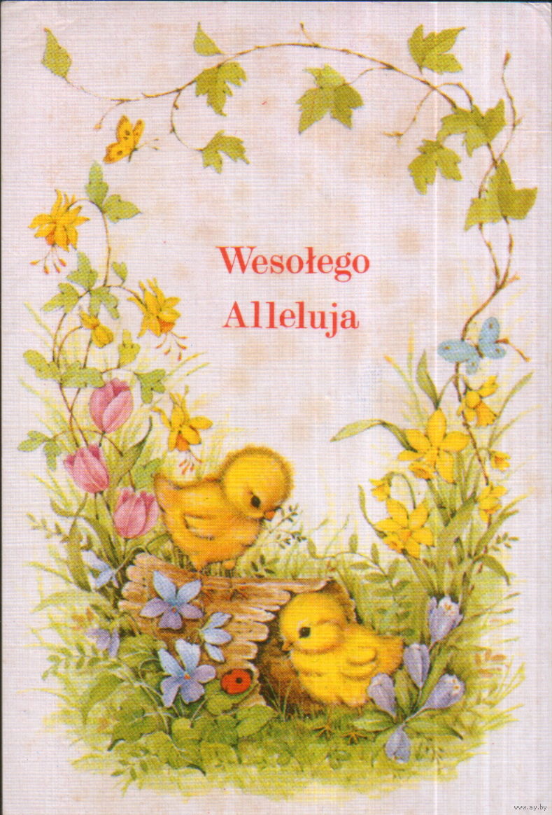 Подписанная открытка Польша 1996г. "Пасха. Цыплята"