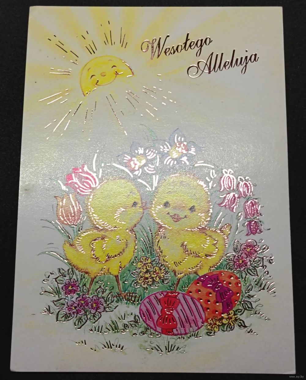 Подписанная открытка Польша 1996г. "Пасха. Цыплята"