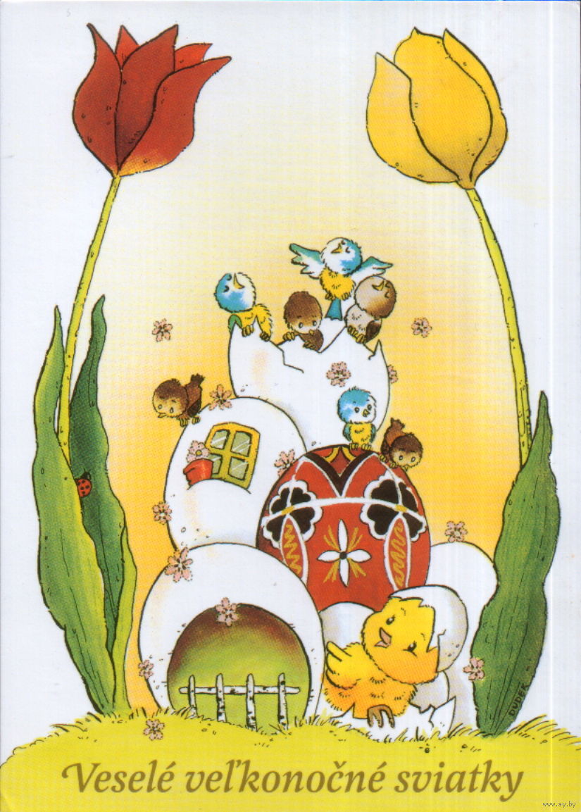 Подписанная открытка Словакия 2002г. "Пасха. Цыпленок и птенцы"