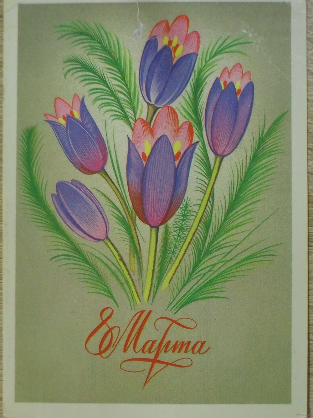 ПОДПИСАННАЯ ОТКРЫТКА СССР. ПРОШЕДШАЯ ПОЧТУ. "8 МАРТА".ХУД. В. ЧМАРОВ. 1985 год.