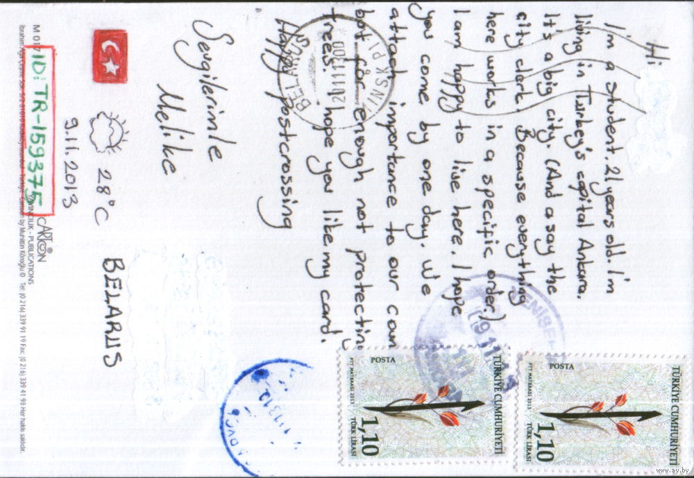 Подписанная открытка Турция 2013г. "Побег ради жизни" худ. Мухиттин Кёроглу