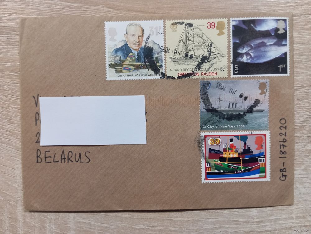 ПОДПИСАННЫЙ КОНВЕРТ. ВЕЛИКОБРИТАНИЯ. ПАРУСНИКИ И РЫБЫ.