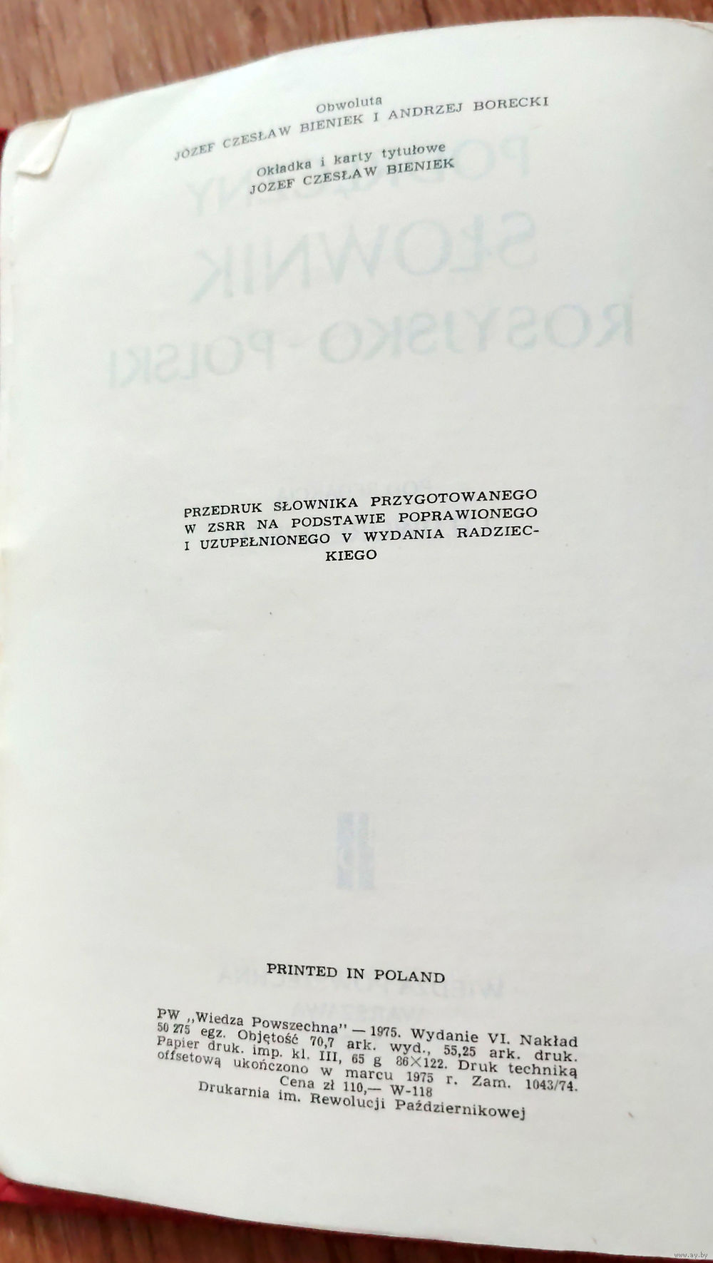 Польский тираж, основанный на материалах V исправленного советского издания. Объем: около 25 000 слов. Может представлять интерес как исторический артефакт и функциональное пособие по русистике/полонистике. Отличное дополнение к специализированной и домашней библиотеке. Состояние на фото, необходима небольшая реставрация.