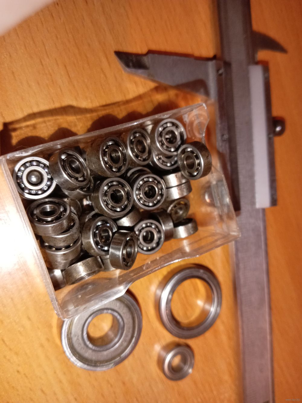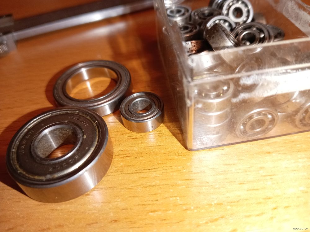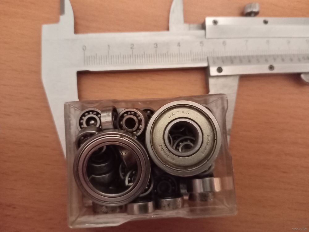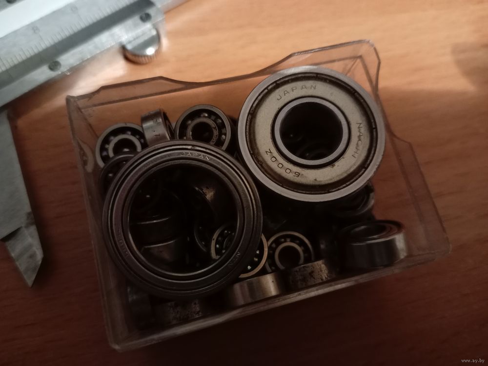 Коробка с подшипниками мелкими 2 подшипника с маркировкой Japan остальные не маркированы. Размеры мелких на фото. Мелкие подшипники не перечитывал.