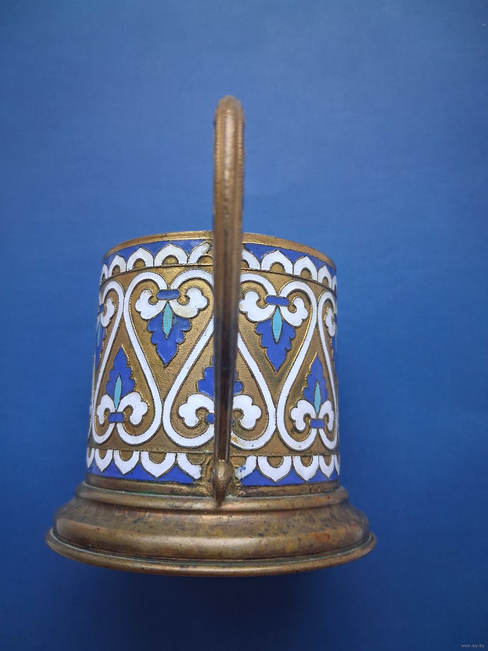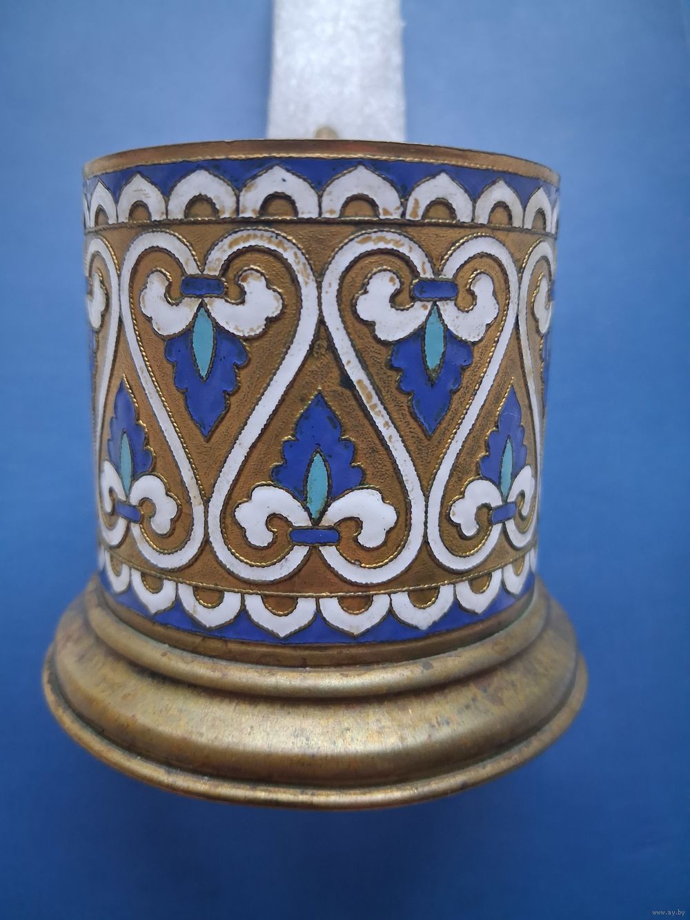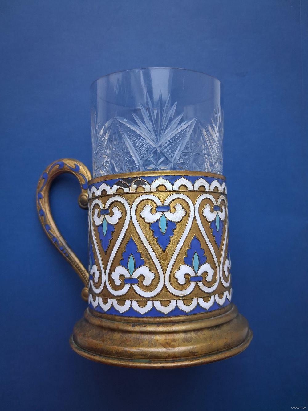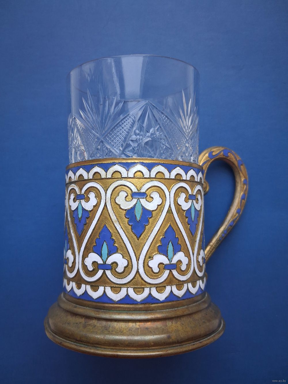 ЛАТУННЫЙ ПОДСТАКАННИК (ЭМАЛИ) + ХРУСТАЛЬНЫЙ СТАКАН (ЦЕЛЫЙ)