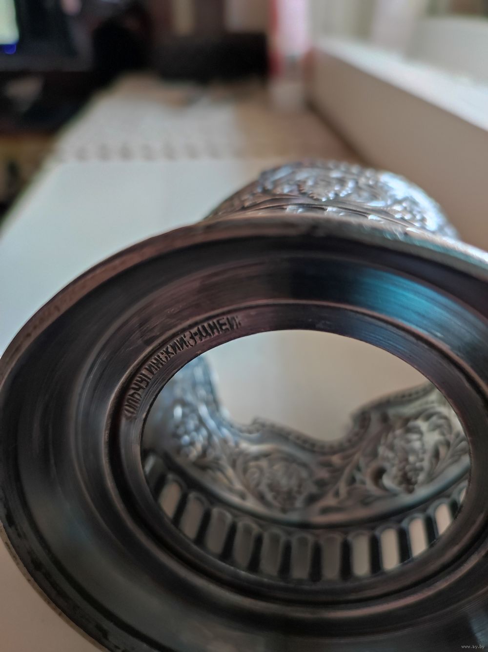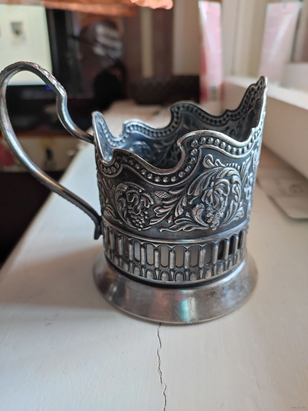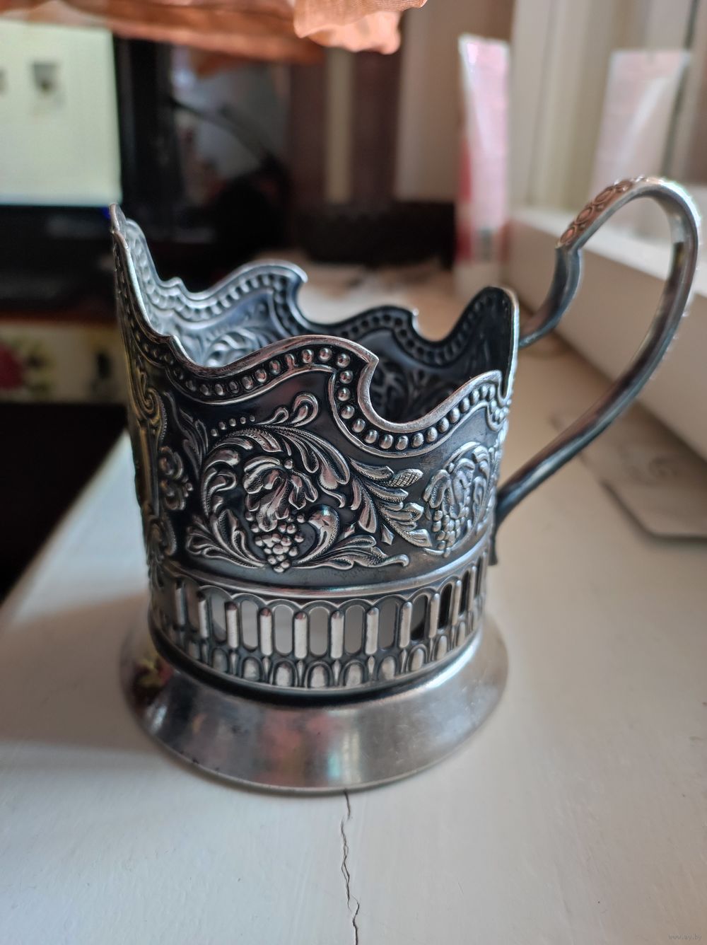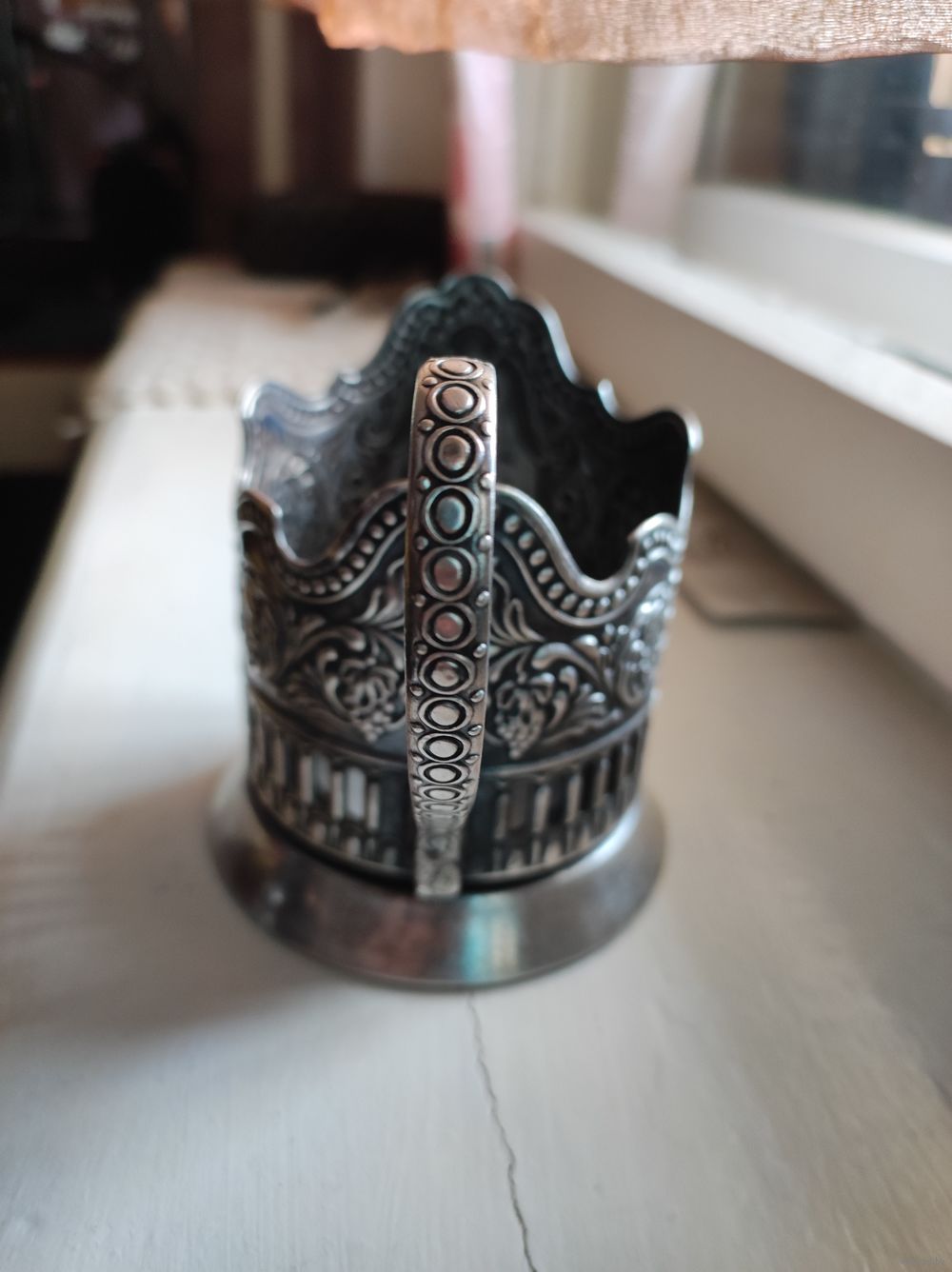 Подстаканник. Без дефектов. Юбка ( основание) ровная, не гнутая. Ручка перпендикулярная подстаканнику. Сервантное хранение . Мельхиор .