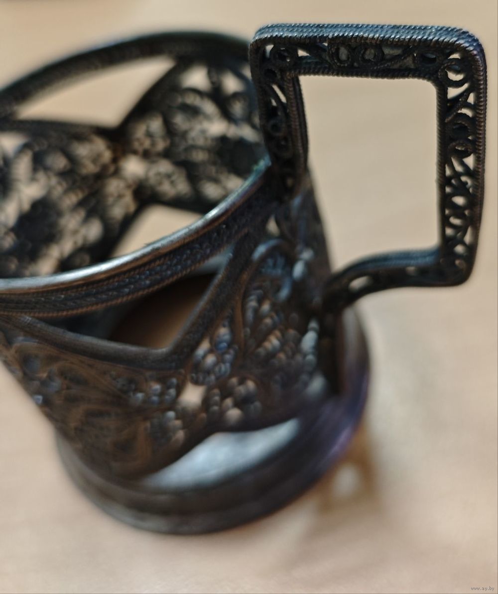 Подстаканник, коллекционный, советский. Мельхиор, скань, КХИ