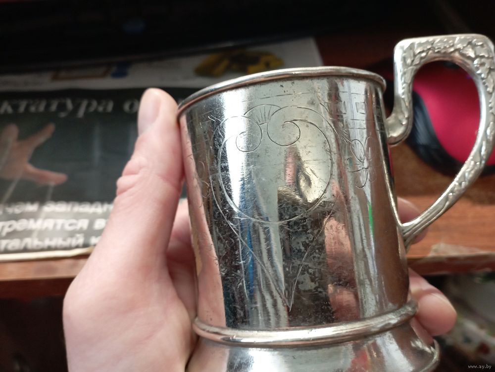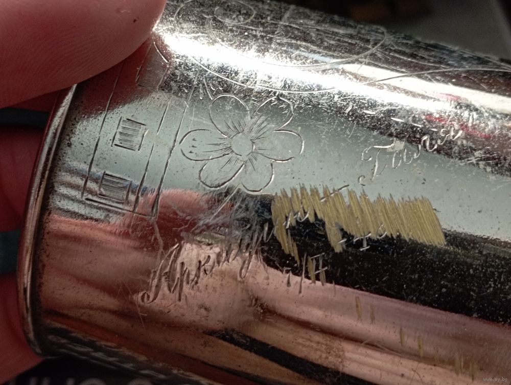 Подстаканник с дарственной гравировкой,дата.Никелированная латунь .СССР.1948 год