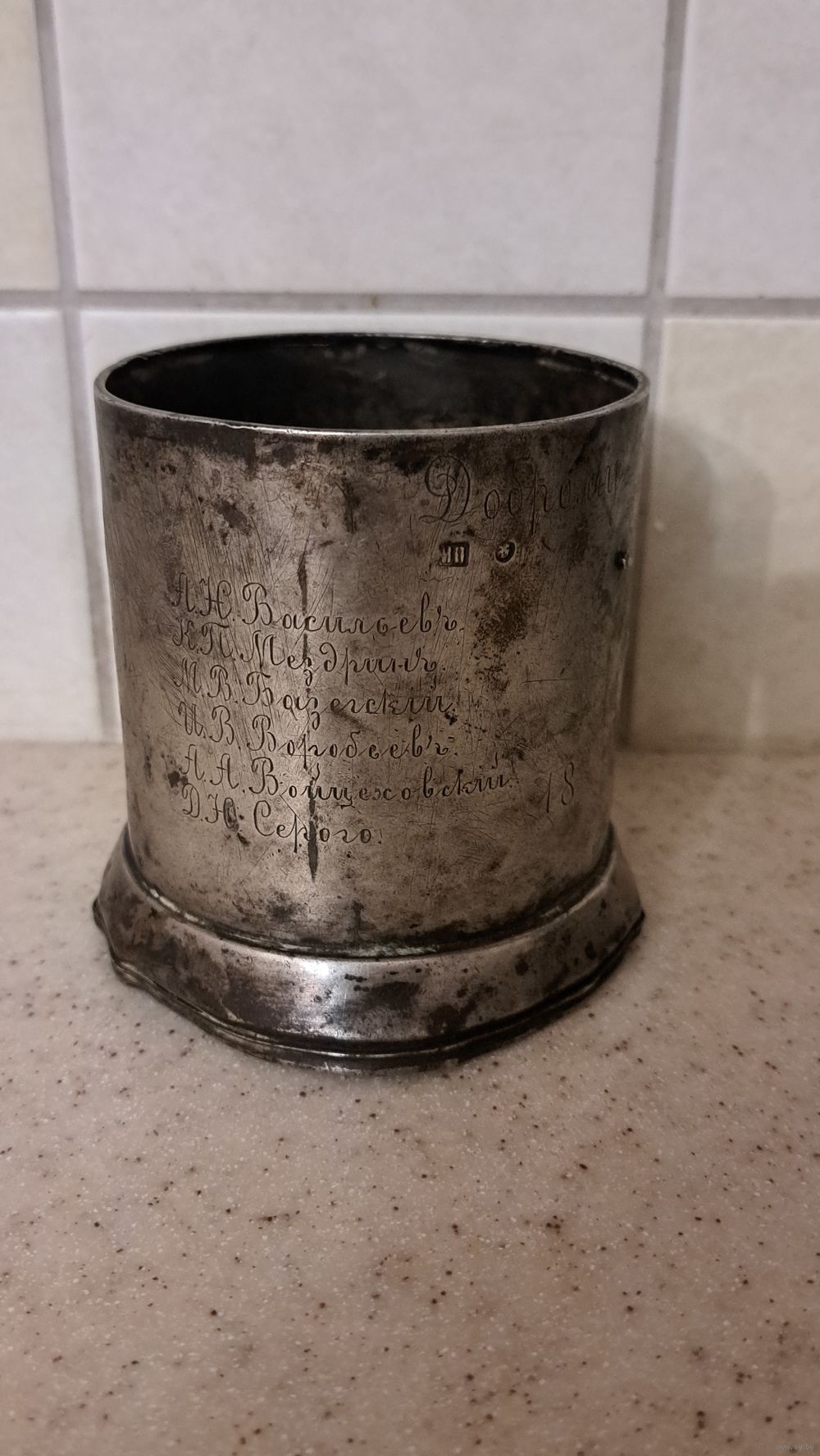 Интересный на мой взгляд предмет. В реставрацию. Вес 127.2 гр. Может у кого получится идентифицировать всех, или кого то из этого списка лиц. На данный момент по цене скупки этот предмет стоит в районе 510 рублей. Я продаю за 600 рублей. Смотрите также и на другие мои лоты. Всегда много интересного в продаже. КУПЛЮ ИКОНЫ. КУПЛЮ УГОЛЬНЫЕ САМОВАРЫ. КУПЛЮ СТАТУЭТКИ И ДРУГОЙ АНТИКВАРИАТ. КУПЛЮ ЧАСЫ КОРПУСА С МАРКИРОВКОЙ АУ. КУПЛЮ МОНЕТЫ, ЗНАКИ, НАГРАДЫ.