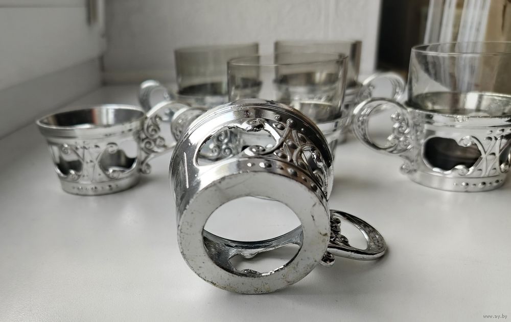 Подстаканники маленькие ( 6 шт. ) и 4 стакана.