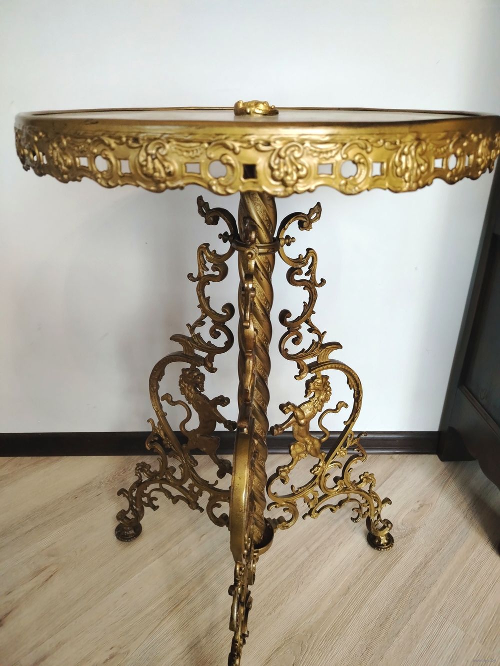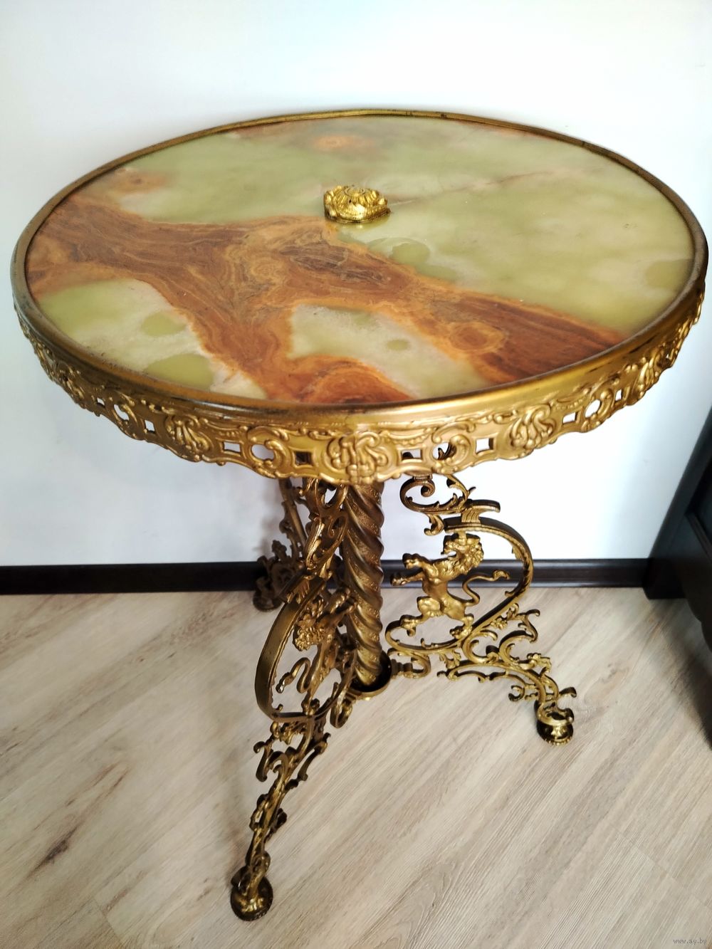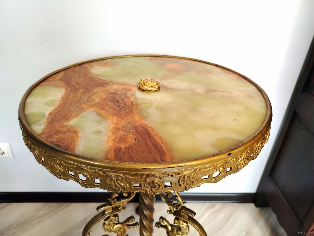 Подставка для цветов, уличные столик. Европа. Металл, оникс. Высота 76см диаметр столешницы 46см.