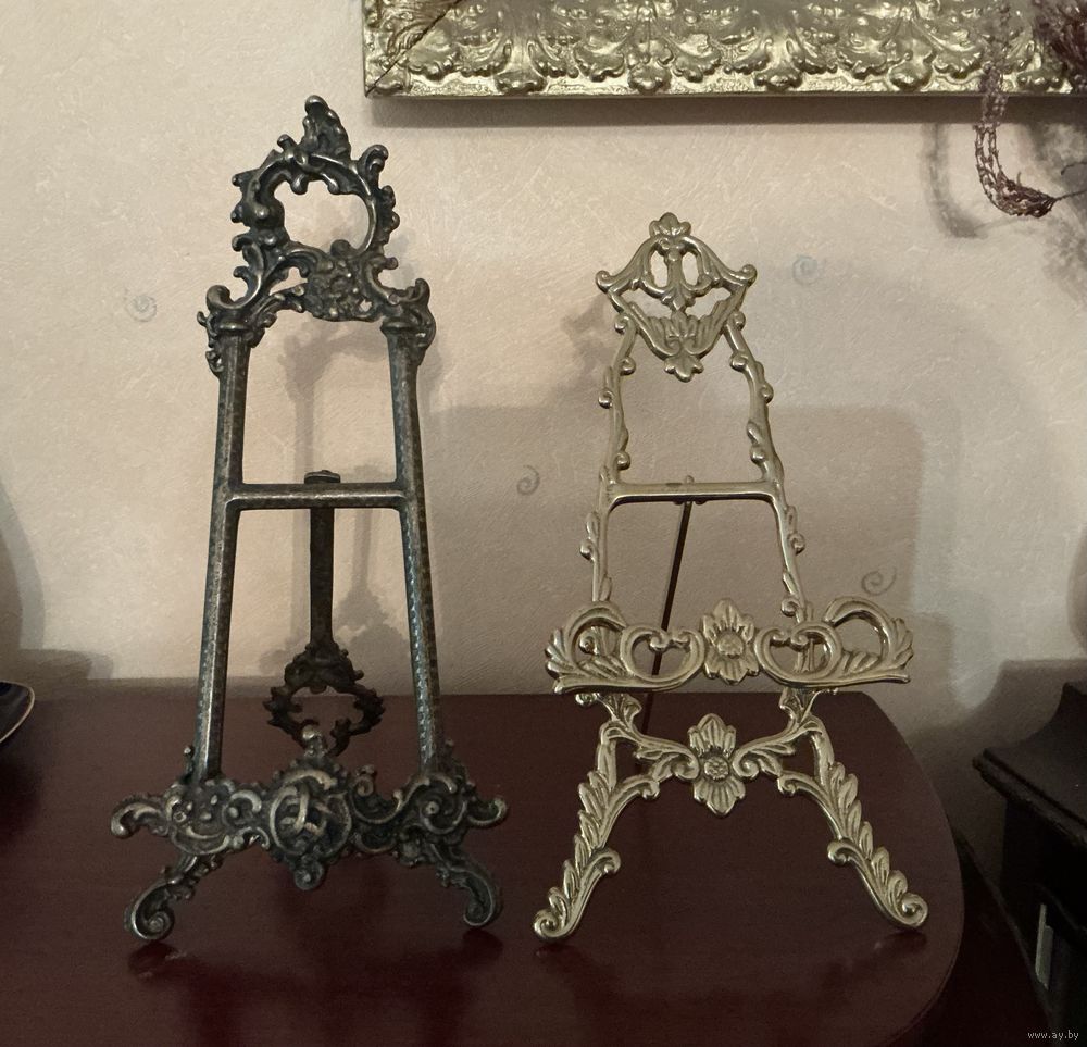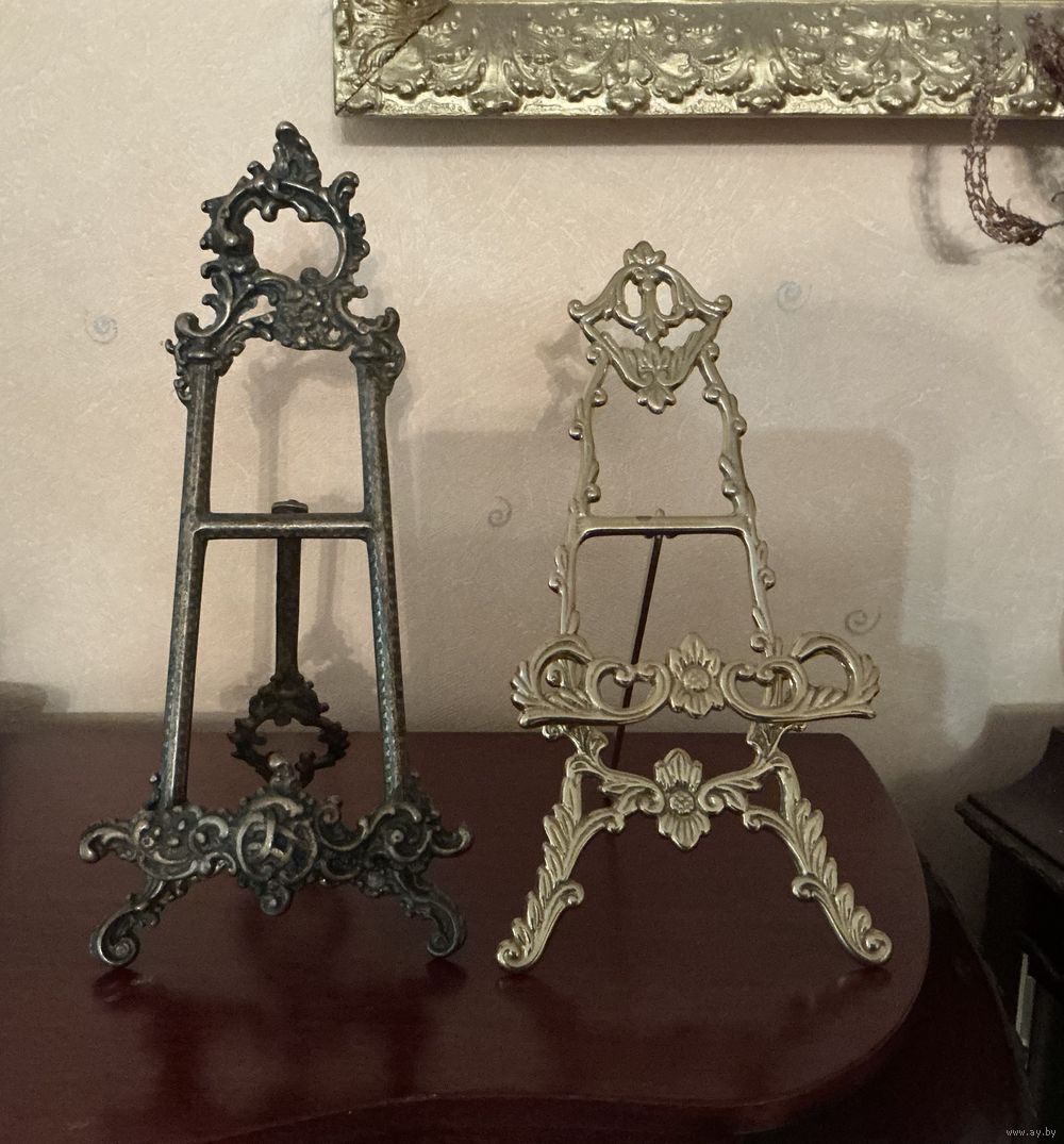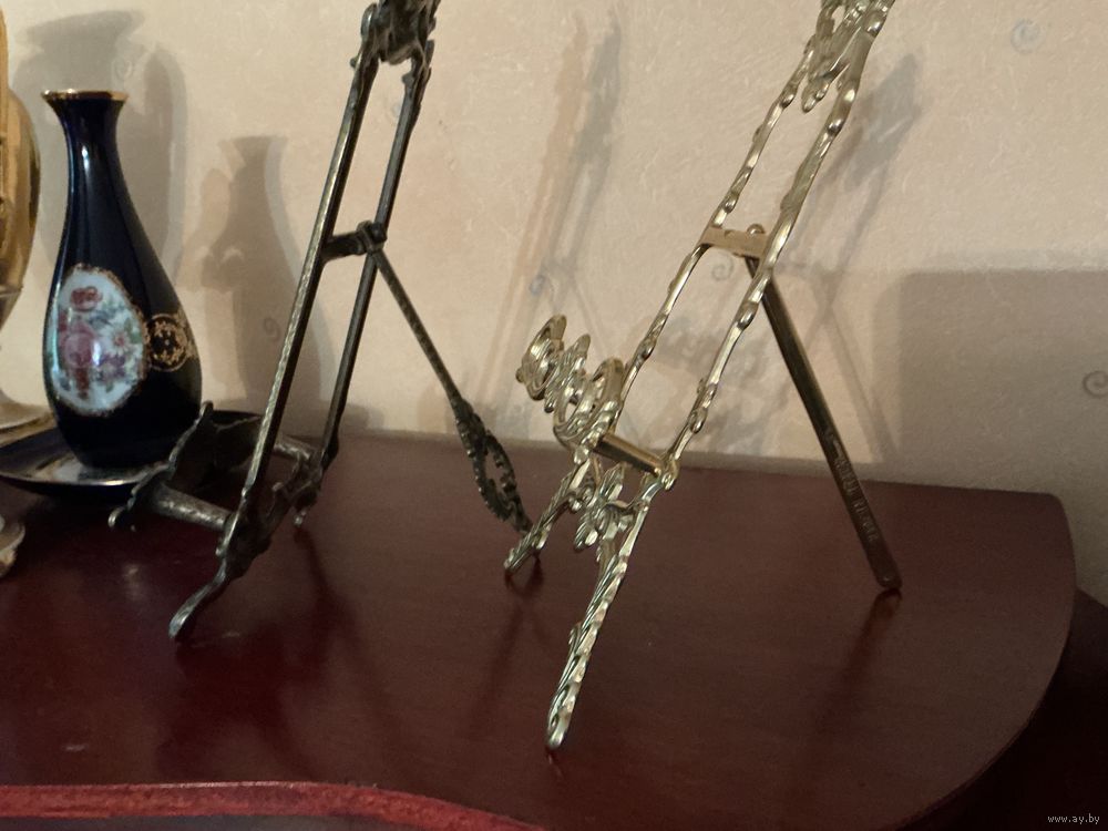 Подставки для тарелок, большая под бронзу высота 26 см , цена 135 р , вторая золотая , высота 24 см цена 120 р