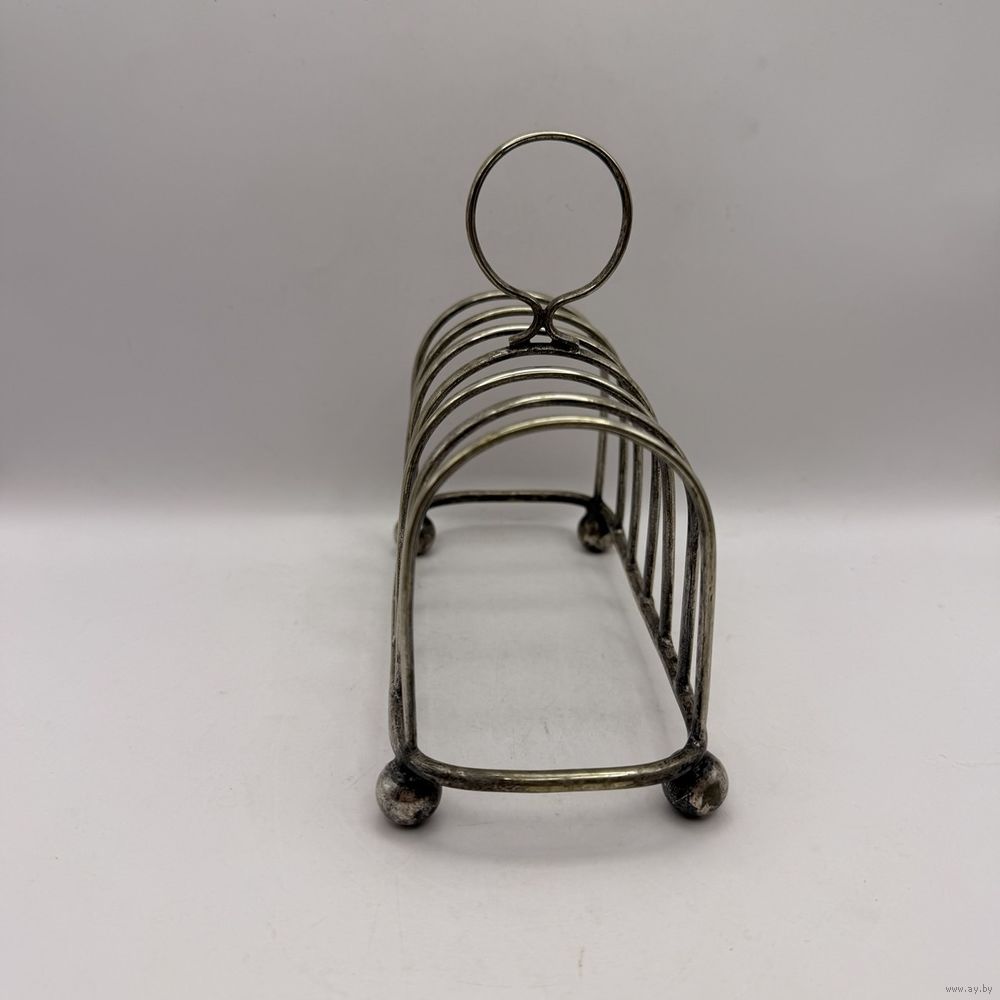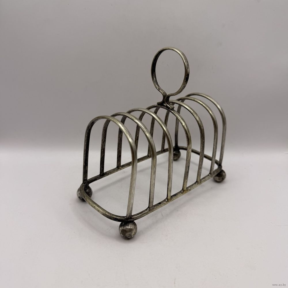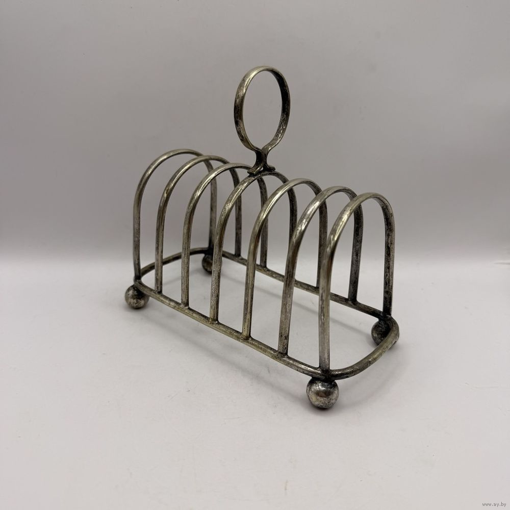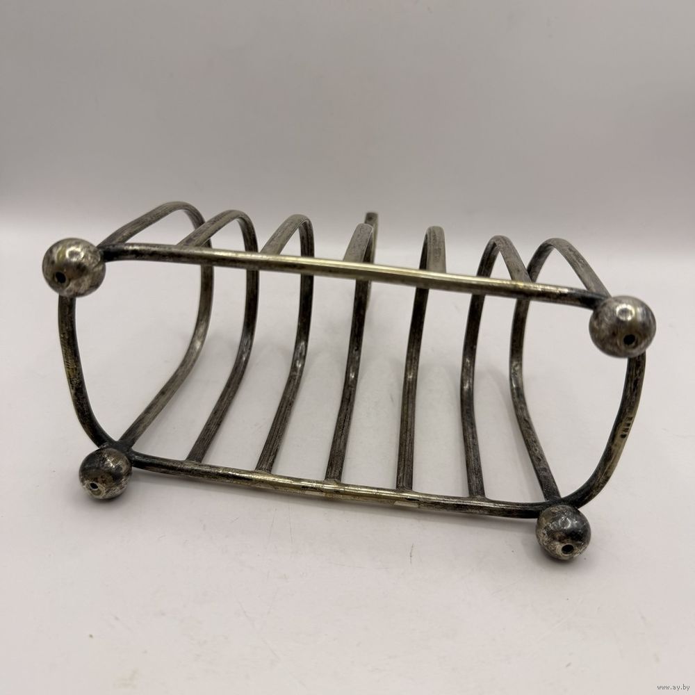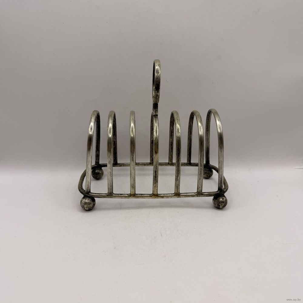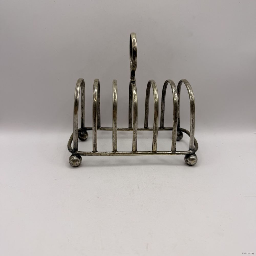 Винтажная подставка для тостов из посеребренного металла на 6 ячеек. На ножках-шариках. Франция. 1970-е г.г. Клеймо. Размер 15 х 7,5 см. Высота по ручке 14 см. Естественная патина.